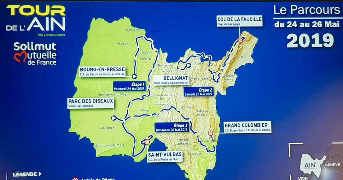 Il Tour de l’Ain 2019 si preannuncia una corsa piuttosto spettacolare. La breve corsa a tappe francese ha svelato oggi il percorso delle tre frazioni, che si terranno dal 24 al 26 maggio, confermando lo spostamento da agosto già avvenuto nel 2018. Le diverse difficoltà altimetriche saranno favorevoli agli scalatori puri, agevolati dai due arrivi in salita e dall’assenza di cronometro. La competizione arriverà quest’anno alla sua edizione numero 31, potendo vantare nel proprio albo d’oro corridori del calibro di Thibaut Pinot e Romain Bardet. L’anno scorso fu Arthur Vichot (Groupama-FDJ) a imporsi.