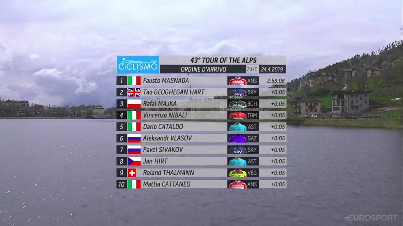 Ordine d’Arrivo Terza Tappa Tour of the Alps 2019