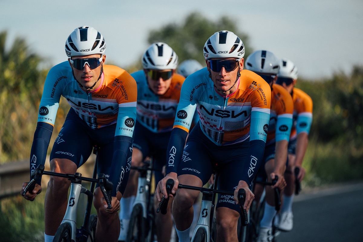 Continua la rifondazione della ormai ex Israel – Premier Tech, che con il cambio di sponsor e supporto si chiamerà NSN Cycling Team. La formazione prossima al ritorno nel WorldTour è ripartita in questi giorni con un ritiro in Spagna, ormai luogo tradizionale per la maggior parte delle squadre, ma che in questo caso ha un valore ancora maggior visto che è il paese del nuovo main sponsor, tanto che nella nuova maglia presentata oggi c’è proprio un richiamo a Barcellona, con le sue geometrie, blocchi di colore e motivi. Nel completo prodotto da Ekoi, che vede arancione, azzurro, bianco e nero come colori dominanti, sono presenti inoltre elementi dell’Imigongo, arte decorativa tradizionale del Rwanda, richiamando così il progetto Racing for Change che la squadra ha adottato.