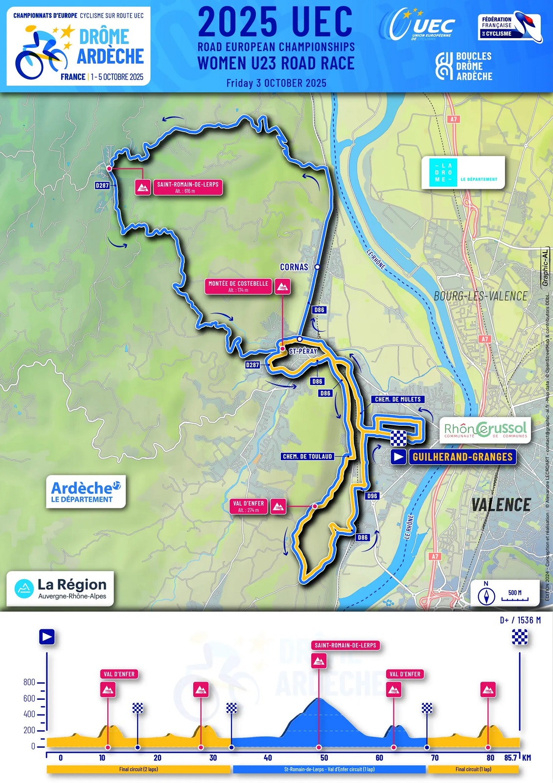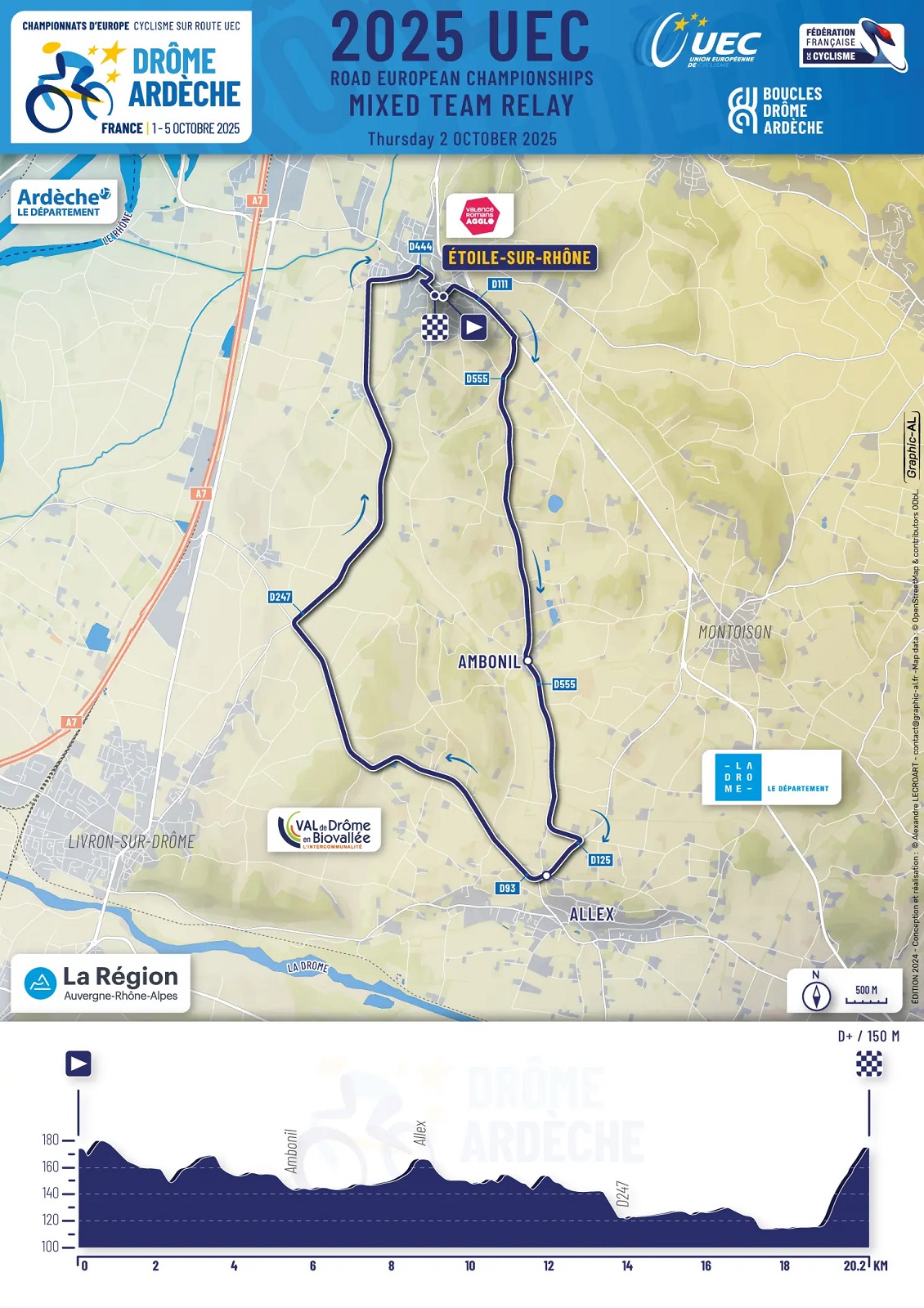Europei Drôme-Ardèche 2025, il percorso (Altimetrie e Planimetrie)