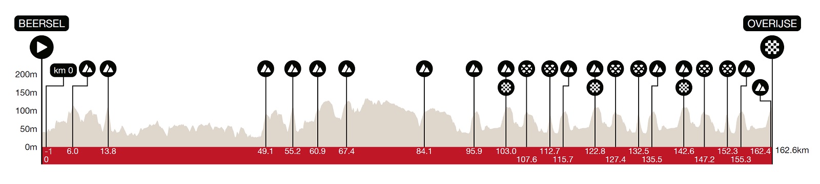 Percorso in larga parte confermato per la Freccia del Brabante 2026. In programma venerdì 17 aprile, la classica fiamminga accorcia ancora un po’ il proprio tracciato rispetto alle ultime edizioni, portando la distanza totale a 162,6 chilometri, ma mantiene inalterati i passaggi principali, oltre che la partenza da Beersel e l’arrivo a Overijse. Quest’anno, i muri e gli strappi da affrontare saranno 21 (contro i 22 del 2025), i primi sette dei quali si incontreranno nel tratto in linea iniziale che si concluderà a circa 75 chilometri dal traguardo con l’ingresso nel circuito finale, lungo 19,8 chilometri. Si scaleranno quindi per la prima volta le asperità di Holstheide (1 km al 5,3%, max. 11,5%) e di S-Bocht Overijse (1,3 km al 4,2%, max. 5,7%), in cima al quale sarà posto l’arrivo e dove si transiterà per iniziare il primo dei tre giri dell’anello conclusivo, che oltre alle due salite sopracitate proporrà i muri in pavé di Hertstraat (700 m al 4,7%, max. 9,4%) e Moskesstraat (500 m al 9,2%, max. 14,9%).