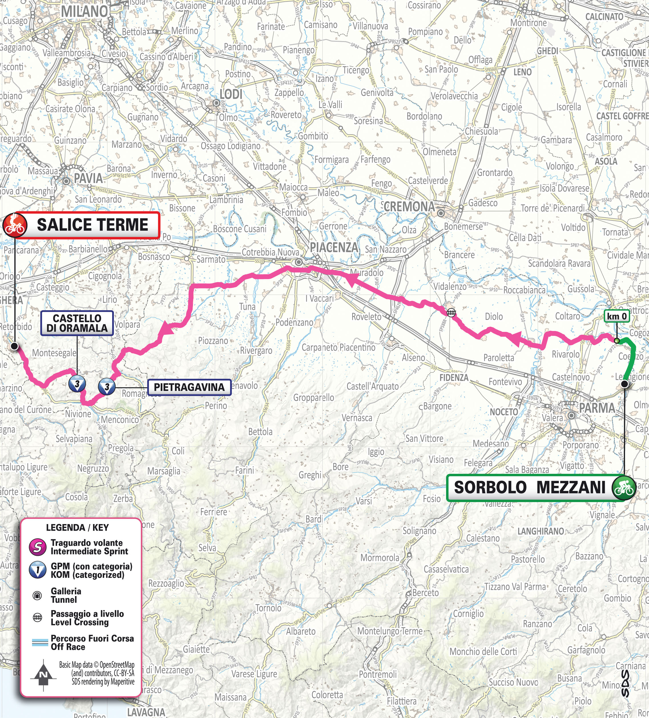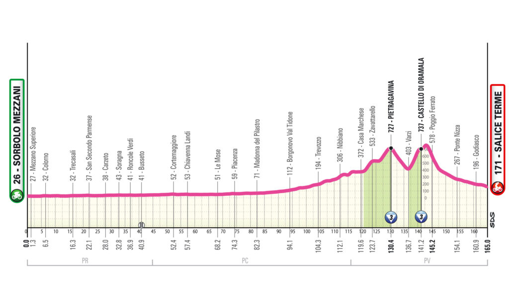 Tappa 7 (05/06): Sorbolo Mezzani – Salice Terme (165 km)