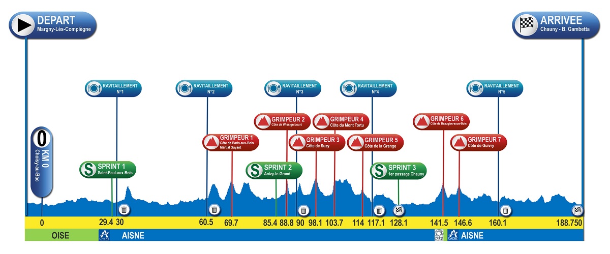 Percorso per ruote veloci quello della Paris-Chauny 2025. In programma domenica 28 settembre, stesso giorno della prova in linea dei Mondiali, la corsa francese dovrebbe infatti concludersi allo sprint (come sempre accaduto nelle ultime edizioni) nonostante un tracciato che nella fase centrale sarà abbastanza movimentato. Anche quest’anno la partenza avverrà da Margny-lès-Compiègne e l’arrivo sarà a Chauny, dove nel 2024 si impose Arnaud Démare, con i corridori che dovranno percorrere in tutto 188,7 chilometri e superare sette brevi côtes, l’ultimo dei quali scollinato a 42 chilometri dalla conclusione.