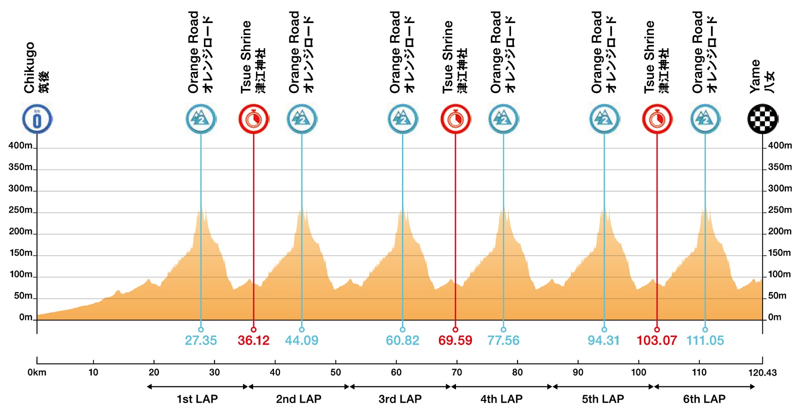 Tappa 1 (11/10): Chikugo – Yame (120,4 km)