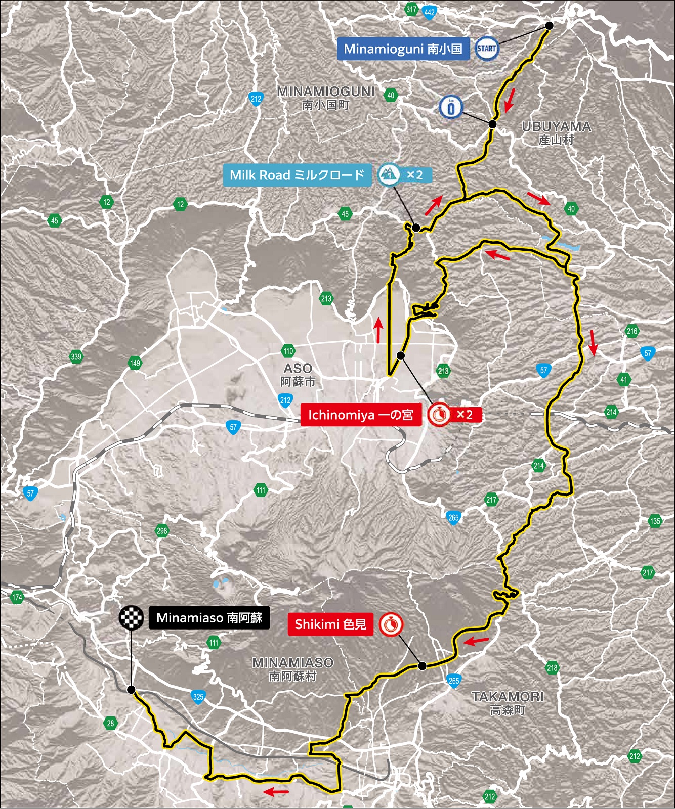 Tappa 2 (12/10): Minamioguni – Minamiaso (114,8 km)