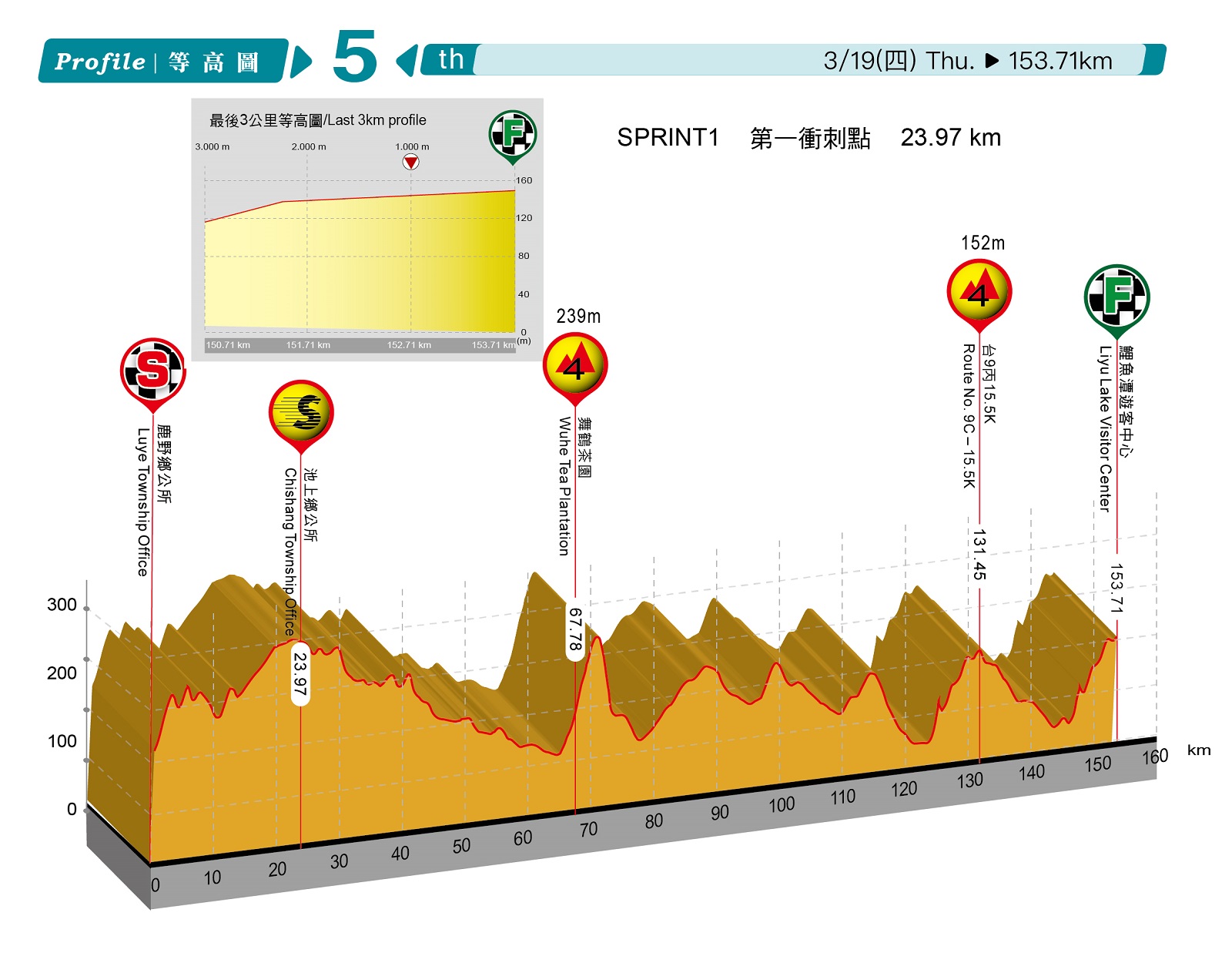 Tappa 5 (19/03): Luye Township Office – Liyu Lake Visitor Center (153,7 km)
