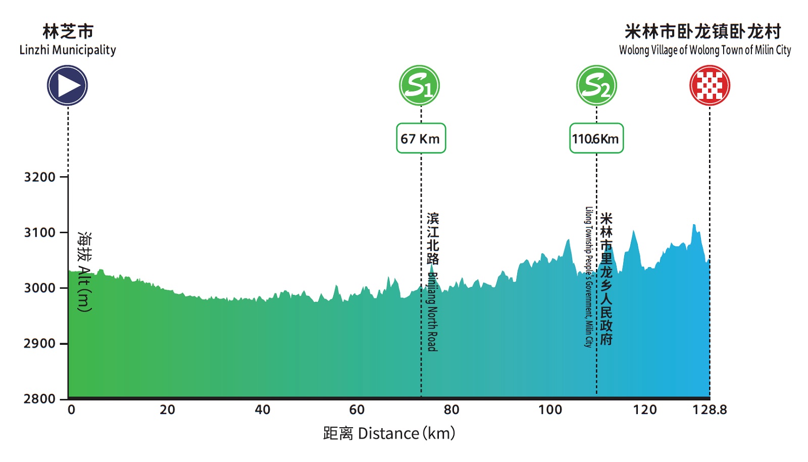 Tappa 1 (07/08): Linzhi – Wolong Village (128,8 km)