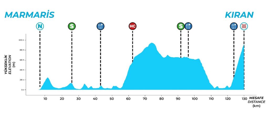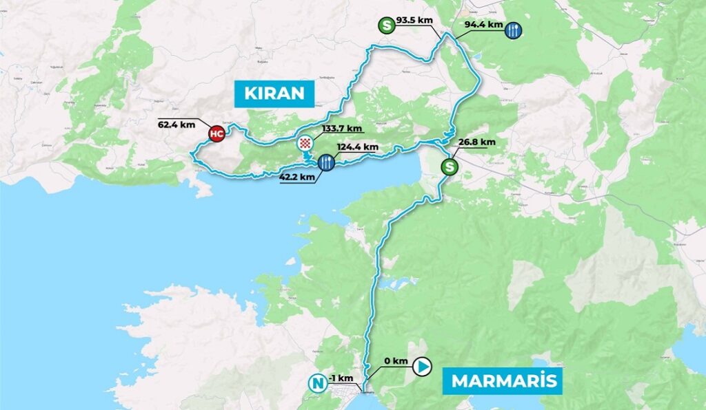 Con la terza tappa, la Marmaris – Kiran (132,7 km), il Giro di Turchia 2026 entra davvero nel vivo, affrontando il primo dei due arrivi in salita. Si parte subito con la testa all’insù su una salita di quasi 5 km al 5%, per poi affrontare una quarantina di chilometri pianeggianti. Un lungo GPM di prima categoria, 18,4 km con una pendenza media del 5% (risultato di tratti quasi pianeggianti e punte intorno all’8%) metterà fatica nelle gambe dei corridori, ma il vero ago della bilancia sarà il GPM finale di Kiran, con cui si conclude la tappa. I suoi 9 km con una pendenza media del 9,7% non lasceranno spazio a tattiche e strategie, dato che serviranno le gambe migliori per battere la concorrenza.