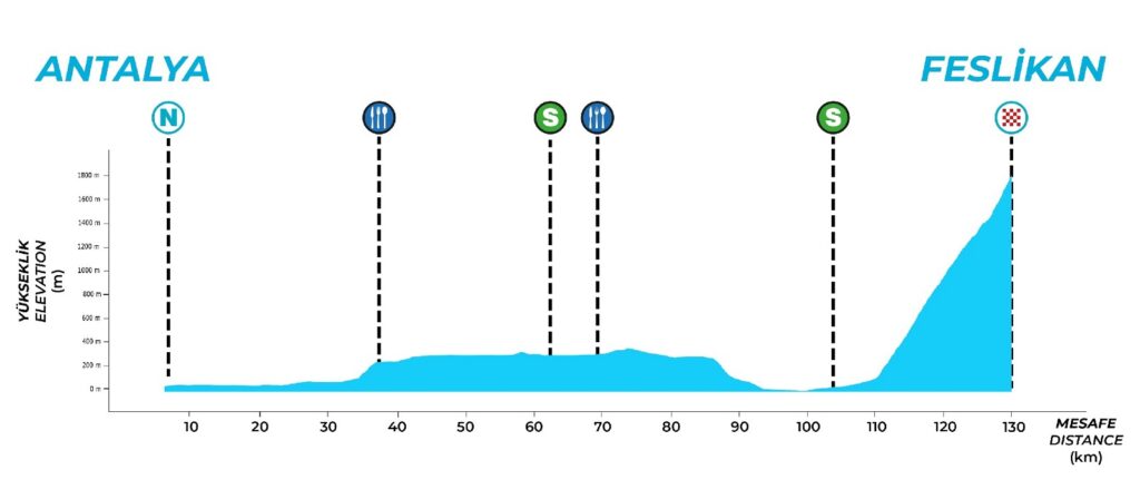 La tappa regina del Giro di Turchia 2026 è però probabilmente la sesta. La Antalya – Feslikan (127,9 km) infatti presenta il secondo, durissimo arrivo in salita. Dopo più di 100 chilometri pianeggianti, i corridori arrivano ai piedi del GPM finale, il lunghissimo Feslikan, che misura 21,4 km e presenta una pendenza media dell’8,3%. Gli ultimi 4,5 km, poi, sono durissimi, con una pendenza media del 10,4%. La frazione si presenta come la sfida massima per gli scalatori puri, che trovano il terreno giusto per sfruttare le loro caratteristiche.