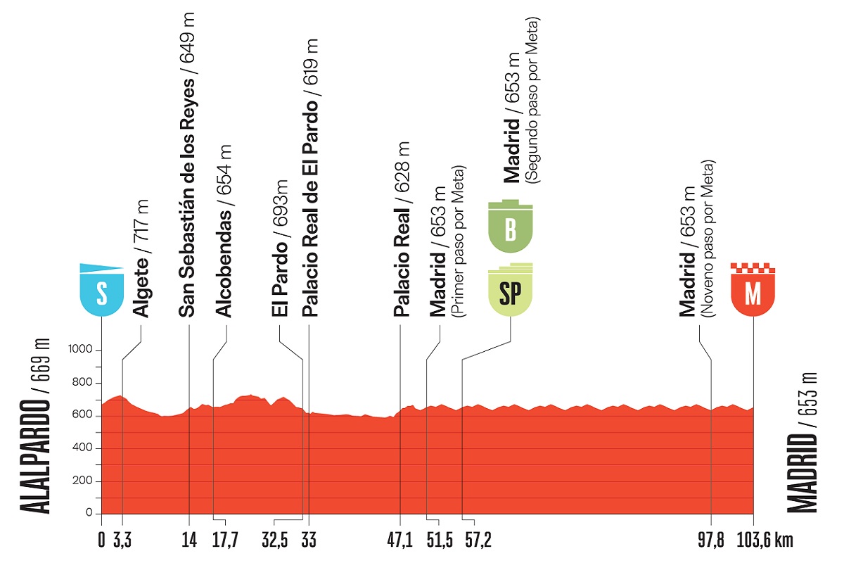 Il via verrà quindi dato da Alalpardo, comune situato a nord-est di Madrid, e nei primi 49,7 chilometri il gruppo affronterà un tratto in linea che offrirà qualche leggera ondulazione ma, soprattutto, sarà teatro dei tradizionali festeggiamenti dei vincitori delle varie maglie e delle loro squadre. Solo con l’ingresso nel circuito finale della capitale spagnola e con il primo passaggio sulla linea d’arrivo, che avverrà a 52,2 chilometri dalla conclusione, inizierà la corsa vera e dovremmo assistere ad alcuni attacchi e tentativi da parte di coloro che vorranno provare ad anticipare la probabilissima volata.