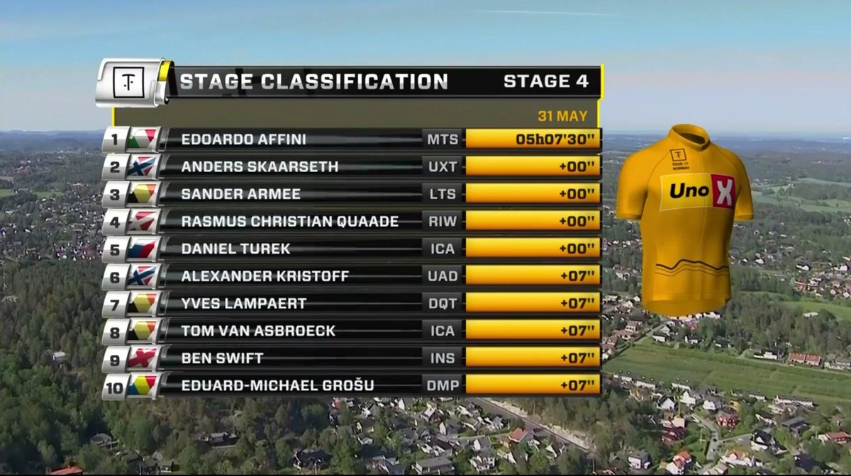 Ordine di Arrivo Quarta Tappa Giro di Norvegia 2019