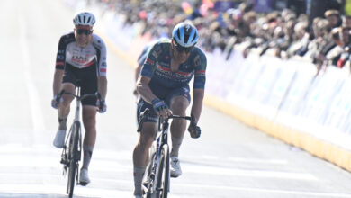 Sul primo settore è Cedric Beullens (Lotto-Intermarché) che prova a partire, creando una selezione che tuttavia non gli permette di isolarsi al comando. La velocità resta alta e nascono altri scatti, ma nessuno riesce mai a guadagnare abbastanza. L’ultima azione porta la firma di Aimé de Gendt (Pinarello-Q36.5), che con due scatti in rapida successione porta via un quintetto con Fabio Van den Bossche (Soudal Quick-Step), Dries De Bondt (Jayco-AlUla) e Jens Verbrugghe (NSN Development), la maggior parte dei quali sono lì per un’opera di disturbo, che effettivamente riesce. Partiti a cinque chilometri dal traguardo questi uomini vengono infatti ripresi ancor prima del cartello che indica i tre all’arrivo.