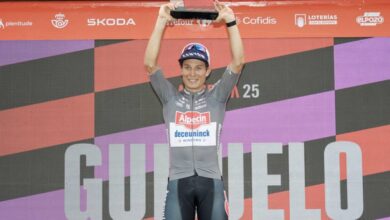 Il destino degli attaccanti è quindi segnato e la loro avventura termina a 46 chilometri dall’arrivo. Da lì in avanti succede ben poco, anche perché in testa al plotone per tenere alta l’andatura si portano anche corridori di Team Jayco AlUla, Red Bull-Bora-hansgrohe, Lotto e, già dentro nel circuito conclusivo, Lidl-Trek. A parte un tentativo di attacco di un corridore della Uno-X Mobility, subito annullato, l’evento più rilevante prima della volata finale è la caduta di Tim Merlier (Soudal Quick-Step) a poco meno di 7000 metri dal traguardo, forse causata dalla strada leggermente bagnata dato che poco prima aveva iniziato a piovere.