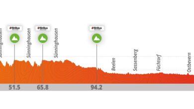 La caduta spezza il gruppo in due e davanti restano una quarantina di corridori, con poche squadre che possono organizzare un vero e proprio treno in vista dello sprint. Ci prova il Team Picnic PostNL all’inizio dell’ultimo giro, poi XDS Astana, Visma e Red Bull, ma alla fine è la Lidl-Trek a trovarsi davanti al momento giusto con Jasper Stuyven a lanciare la volata a Tim Torn Teutenberg. Il tedesco viene affiancato da Lukáš Kubiš (Unibet Tietema Rockets) ed entrambi vengono passati a doppia velocità da Arnaud De Lie (Lotto), che sembra lanciato verso la vittoria ma che, anche a causa un piccolo sobbalzo che gli fa perdere una pedalata, viene rimontato e superato da Jasper Philipsen (Alpecin-Deceuninck) nei metri finali.