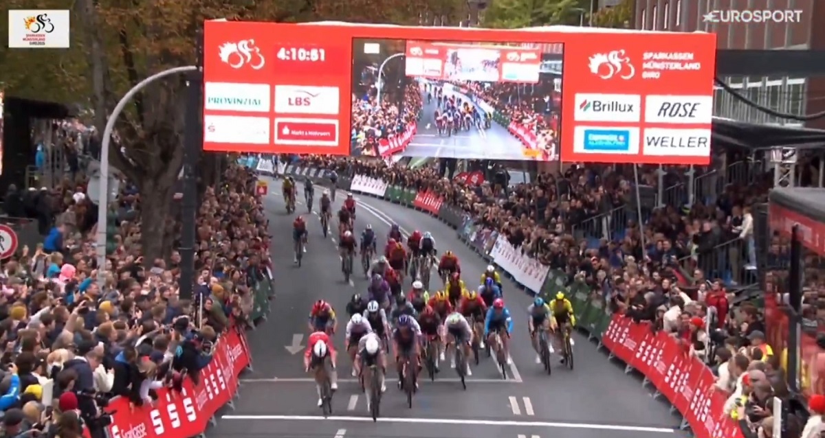 Volata vincente di Jasper Philipsen allo Sparkassen Münsterland Giro 2025. Il belga della Alpecin-Deceuninck ha colto il suo secondo successo consecutivo nella corsa tedesca battendo di giustezza Arnaud De Lie (Lotto), che negli ultimi metri ha perso una pedalata a causa di un leggero rialzo sull’asfalto e ha così subìto il sorpasso del connazionale, comunque già in rimonta. A completare il podio di giornata è il ceco Pavel Bittner (Team Picnic PostNL), mentre colgono la top-10 gli azzurri Alberto Dainese (Tudor Pro Cycling Team) e Matteo Moschetti (Q36.5 Pro Cycling Team), che hanno chiuso rispettivamente al settimo e ottavo posto.