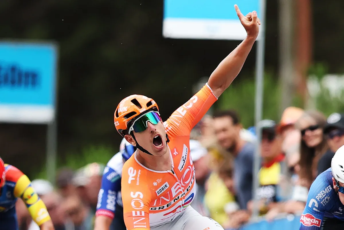 Se a vincere è stato probabilmente l’uomo più atteso, per imporsi il portacolori della Ineos Grenadiers non ha atteso la volatona finale ma ha dovuto seguire alcuni scatti, iniziati da è imposto regolando allo sprint un gruppetto di attaccanti nato con l’azione di Fabio Van den Bosch (Soudal Quick-Step). Con lui si sono mossi altri passisti di qualità come Laurence Pithie (Red Bull-Bora-Hansgrohe), Rémi Cavagna (Groupama-FDJ), Jensen Plowright (Alpecin-Premier Tech) e Matteo Sobrero (Lidl-Trek), oltre ovviamente allo sprinter australiano. Nella volata finale ad avere la meglio è stato proprio quest’ultimo, che si è imposto davanti a Plowright e Sobrero.