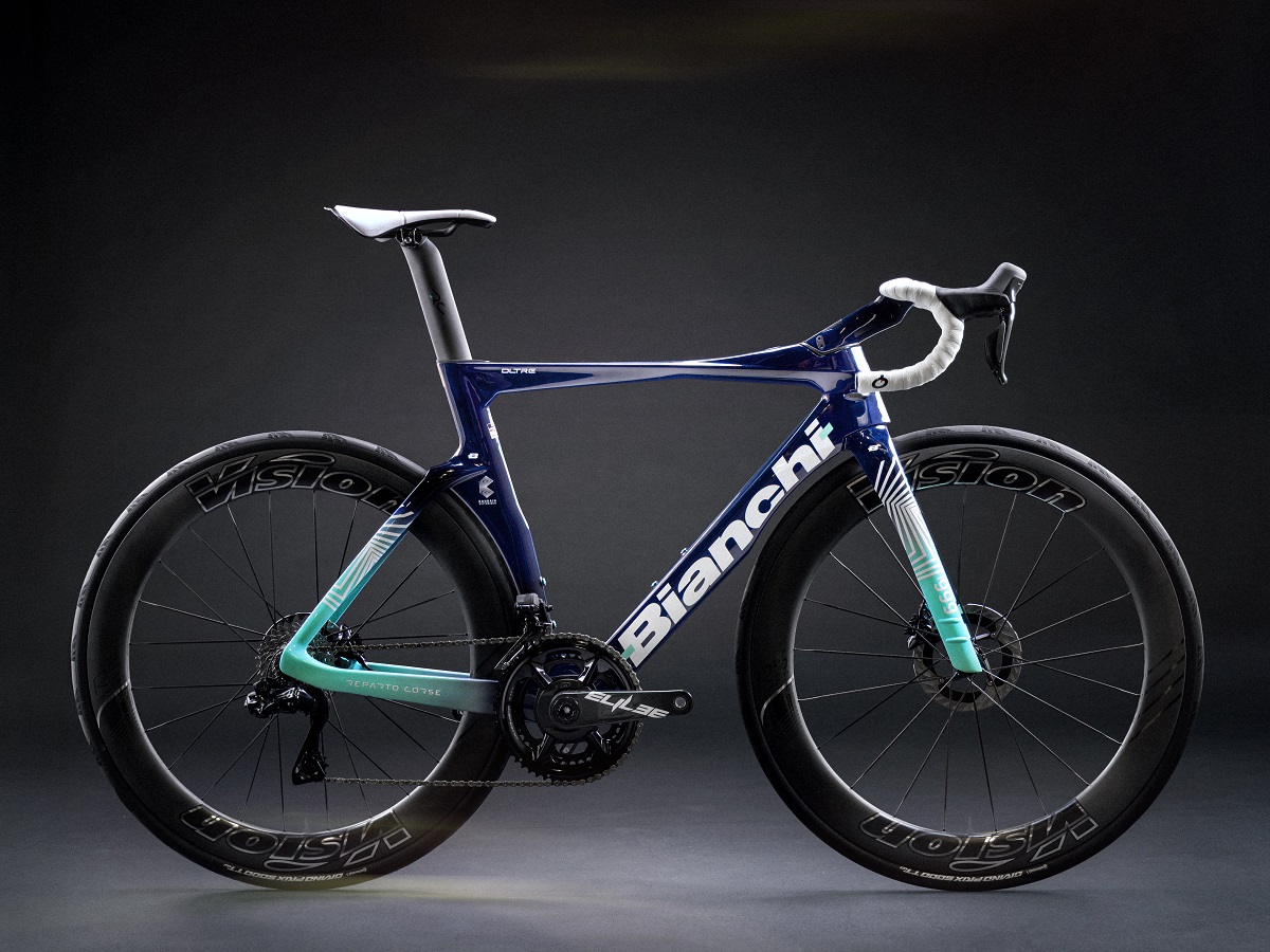 Per quanto riguarda il modello di bici che verrà utilizzato nel 2026 si tratta dell’Oltre RC, il cui telaio avrà prevalentemente una colorazione blu scura e sfumature di azzurro nella parte anteriore e posteriore.