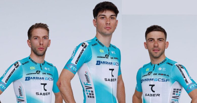 Le Bardiani-CSF 7 Saber montre le maillot pour cette saison. Le Professional italien sera toujours présent dans le peloton en 2026 avec une tenue conçue par Alé Cycling, qui a renouvelé un partenariat de longue date en concevant la ligne PR-S1000. Le nouveau maillot reprend le style graphique qui a caractérisé les dernières saisons, en maintenant une forte cohérence visuelle avec l’identité de l’équipe. Par rapport à la saison dernière, la nouveauté la plus marquante est l’entrée du nouveau sponsor 7 Saber, une marque de vêtements ouzbèke qui ajoute son nom à celui d’autres marques plus historiques telles que Bardiani et CSF. VF Group, retiré du nom de l’équipe, reste néanmoins parmi les sponsors de l’uniforme. En termes de couleurs, dans l’uniforme de Bardiani-CSF 7 Saber, le bleu clair reste la couleur dominante, associé à un short noir. Le dos du maillot présente une nuance de bleu plus intense.