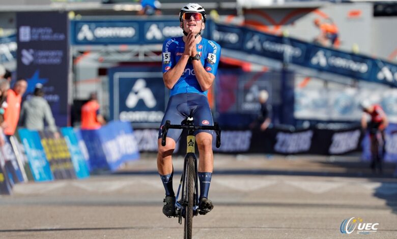 est le nouveau champion d’Europe de cyclo-cross chez les moins de 23 ans. Bien qu’il s’agisse de sa première année dans la catégorie, le jeune homme de 18 ans a triomphé lors des Championnats d’Europe de cyclo-cross à Middelkerke 2025, laissant tout le monde derrière lui et atteignant la ligne d’arrivée seul après avoir fait la différence dans les deux derniers des sept tours au programme. Le Valdôtain, qui s’était imposé l’an dernier chez les juniors dans les épreuves continentales et arc-en-ciel, s’est imposé avec 17 secondes d’avance sur le Néerlandais David Haverdings et 20 secondes sur le Belge Kay De Bruyckere.