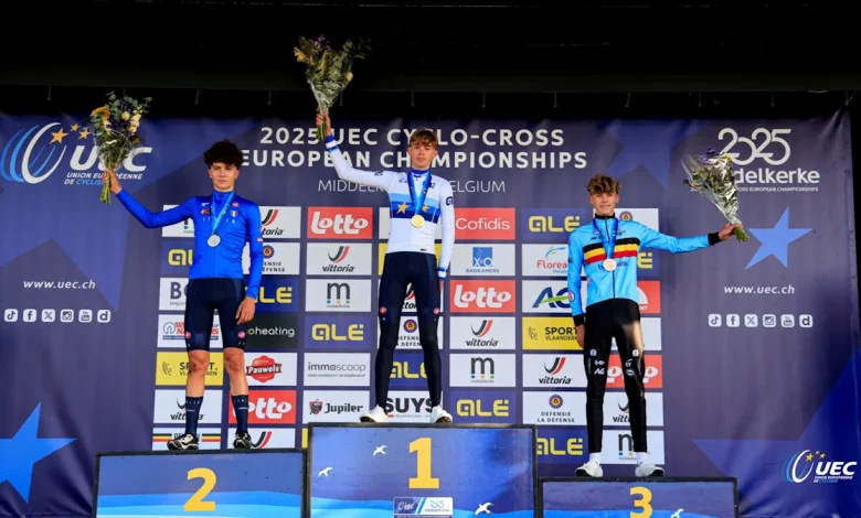 Filippo Grigolini a confirmé sa place au sommet de la spécialité lors des Championnats d’Europe de Cyclocross à Middelkerke 2025. Troisième de la revue arc-en-ciel la saison dernière, le coureur italien défend de la meilleure façon l’or gagné l’année dernière par Mattia Agostinacchio à Pontevedera, en célébrant la médaille la plus précieuse qui succède dans le palmarès au coureur valdôtain, qui entre-temps s’est répété hier chez les U23. Pour la classe 2008, il s’agit d’un succès très prestigieux, réussissant à revenir après un départ moins brillant que ses rivaux, mais terminant néanmoins avec un crescendo qui l’a vu triompher seul après avoir très bien résisté aux accélérations de Giel Lejeune, puis troisième battu aussi par Patrick Pezzo Rosola pour un doublé italien qui vaut aussi la première place provisoire au tableau des médailles.
