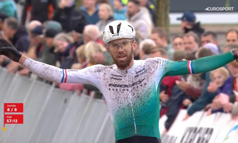 🚵♀️🇳🇱 ; | Pim Ronhaar va tout droit dans l’ovale, mais Joris Nieuwenhuis l’emporte sur le Heerderstrand. Quelle belle victoire ! 💪💪 ; #cyclocross