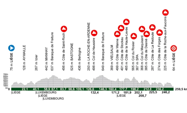 Liège-Bastogne-Liège 2026, le Parcours (Carte et Profil)