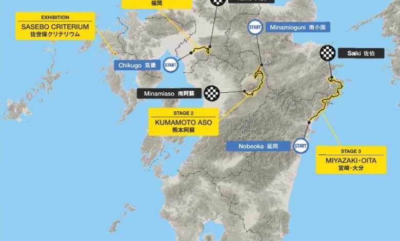 Tour de Kyushu 2025 se déroulera du 11 au 13 octobre. Pour sa troisième édition, la course par étapes japonaise de catégorie UCI 2.1 proposera un Parcours composé de courtes fractions pas trop exigeantes, même si les difficultés liées à l’altitude ne manqueront pas, notamment lors de la première journée, ce qui pourrait également s’avérer décisif pour le succès final. Le Chikugo – Yame (120,4 km) comportera une montée à six reprises dans le cadre du circuit de l’étape, avec le dernier passage à moins de dix kilomètres de l’arrivée, tandis que les bosses seront moins nombreuses dans le Minamioguni – Minamiaso (114,8 km) et le Nobeoka – Saiki (119,2 km), qui devrait se terminer par un sprint.