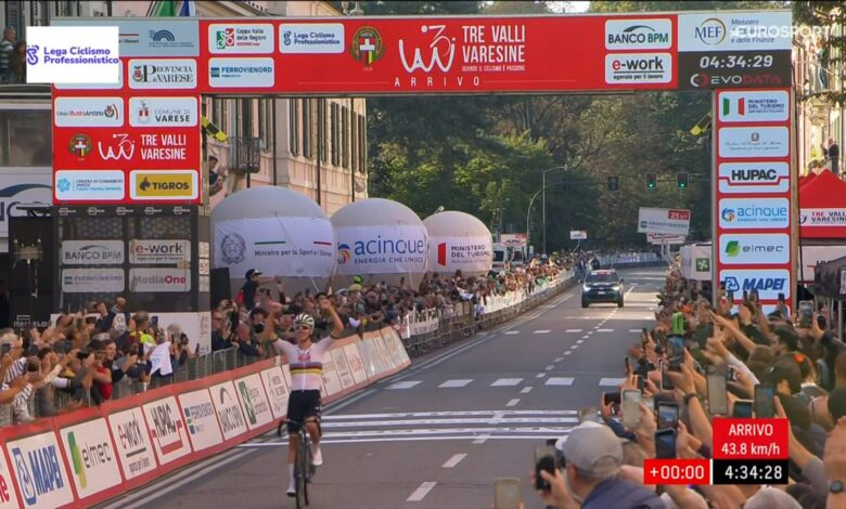 Tadej Pogacar a également remporté la Tre Valli Varesine 2025. Parti en contre-attaque avec Isaac Del Toro, le champion du monde a réalisé une action surprise dans la descente, qui lui a permis de se détacher de ses compagnons d’aventure et de voler en solitaire jusqu’à la ligne d’arrivée, au terme d’un parcours de 22 kilomètres. Pédale après pédale, les quelques secondes d’avance se sont transformées en une minute, permettant au Slovène d’arborer une nouvelle fois avec splendeur son maillot arc-en-ciel.