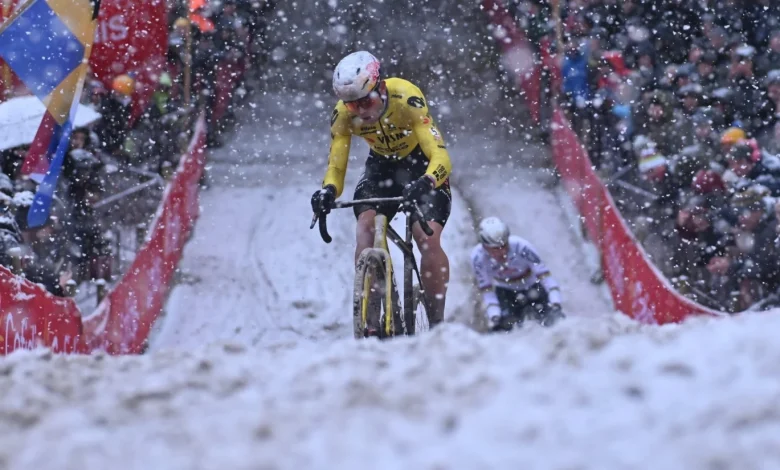 L’enthousiasme chez Visma | Lease a Bike s’est définitivement refroidi à Mol. Ce n’est certainement pas à cause de la neige, mais bien à cause de la mauvaise chute de Wout Van Aert qui l’a contraint à l’abandon pour la première fois de sa carrière en cyclo-cross et qui tient désormais tout le monde en haleine, surtout en vue de la saison sur route. Malmené par Mathieu van der Poel, le Belge a fini par s’écrouler au sol dans les premiers instants du septième tour, perdant ses chances de victoire dans une course qui l’avait vu jouer les premiers rôles, mettant pour la première fois son rival en réelle difficulté, également en raison des conditions météorologiques difficiles, augmentant les regrets pour un accident qui aurait pu être banal, mais qui l’a pourtant, comme le montrent bien les images, sévèrement touché à la cheville.