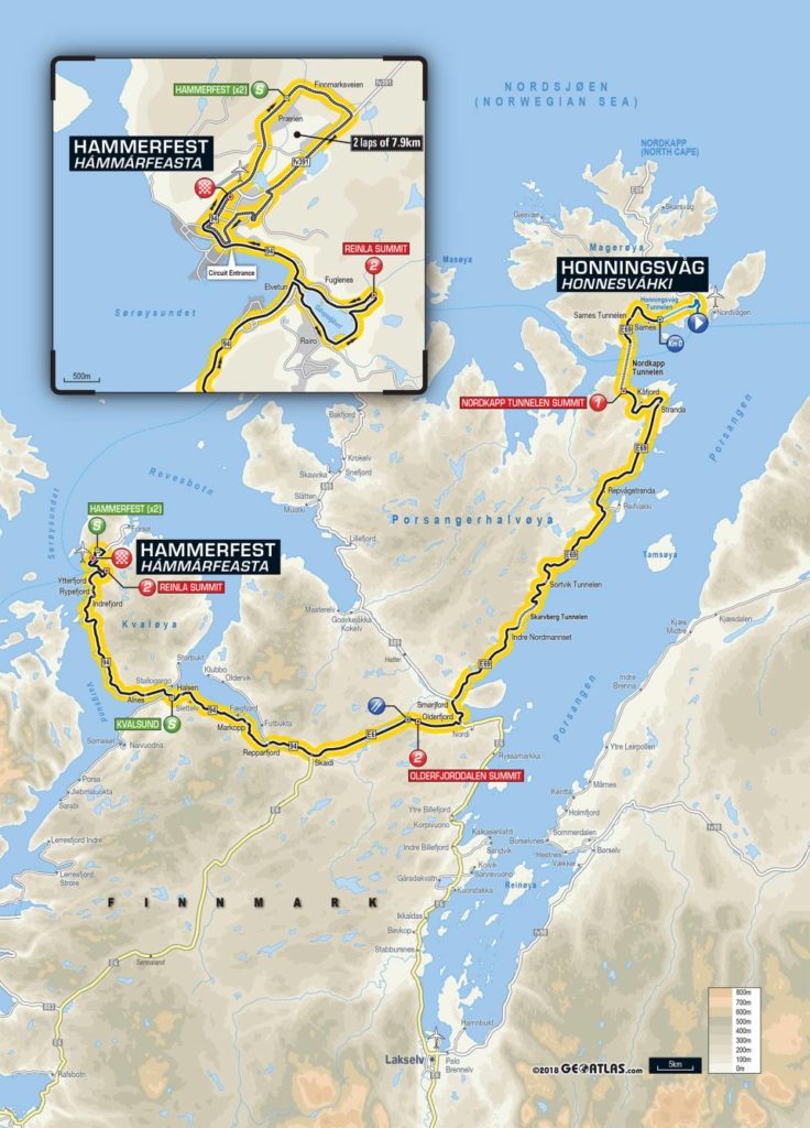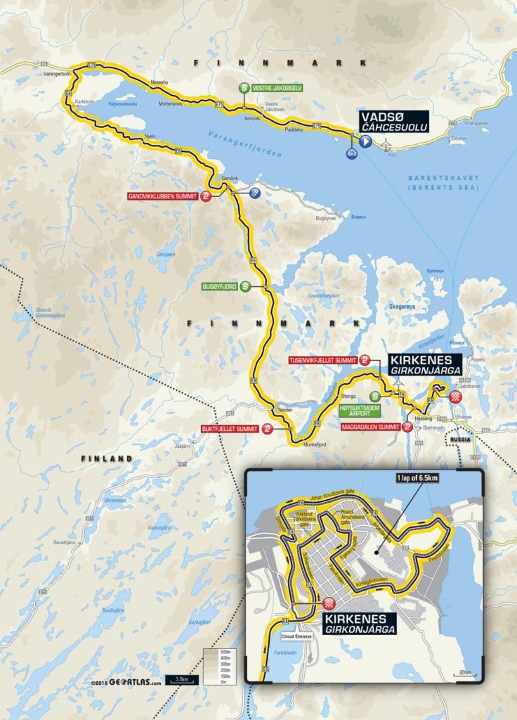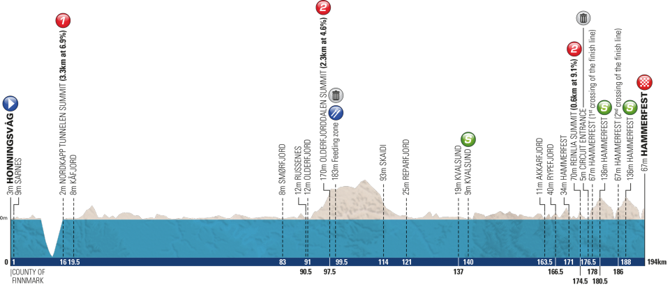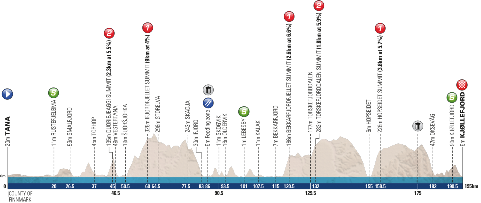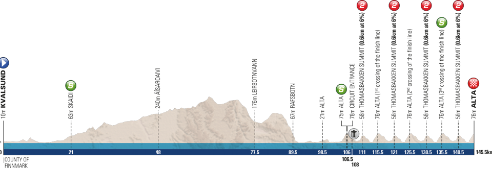 L’Arctic Race of Norway s’élance ce jeudi à 13h30 par une première étape de 184 kilomètres avec quatre difficultés répertoriées au classement de la montagne. Pour autant, celles-ci ne dépassent pas 6% de pente moyenne et ne sont pas longues : un sprint devrait donc lancer cette 6e édition de l’épreuve norvégienne. Le lendemain, les 120 coureurs engagés repartiront pour plus de 190 kilomètres, avec cette fois cinq ascensions, mais la plus dure d’entre elles est située dans la première moitié du parcours. Une bosse non répertoriée pourrait cependant venir perturber le peloton à cinq kilomètres de la ligne. L’arrivée sera jugée au terme d’une courte descente est pourrait cette fois couronner un coureur offensif.
