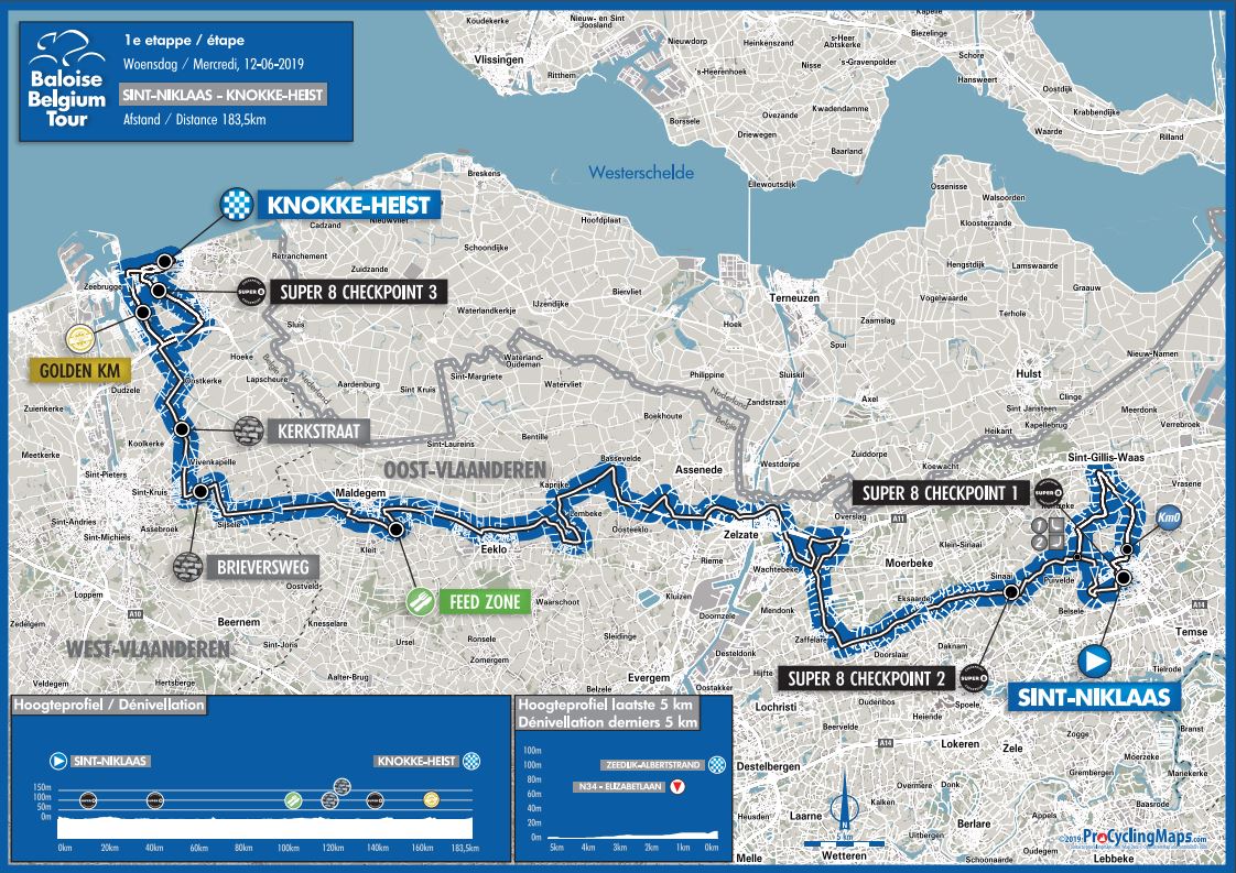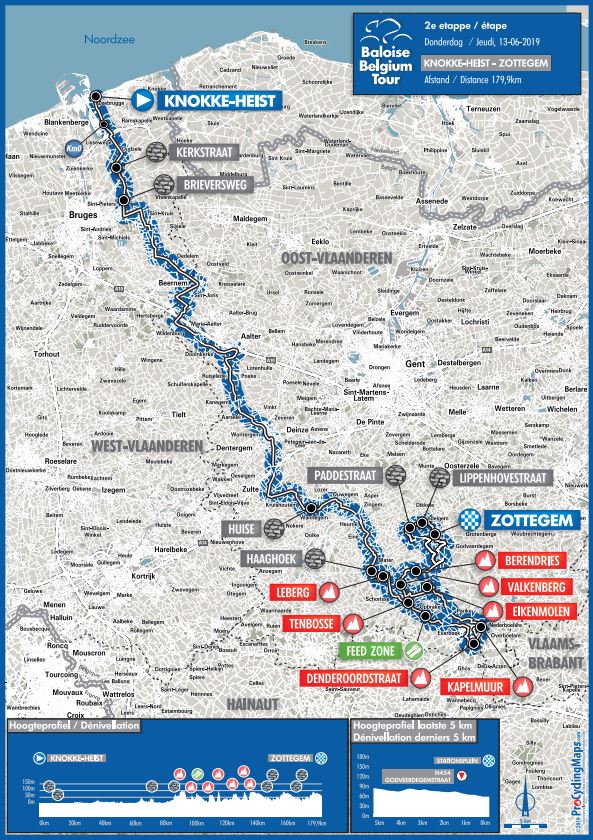 La 89e édition du Tour de Belgique débute ce mercredi, avec une étape dévouée aux sprinteurs. Le parcours tout à fait plat permettra sans aucun doute aux hommes rapides de se disputer le premier maillot de leader à Knokke-Heist. Une première sélection pour le général arrivera le lendemain. Après un début d’étape plat, plusieurs sections pavées seront à négocier en plus des ascensions du Leberg, du Tenbosse, du Denderoorberg et du Muur. Le parcours est escarpé jusqu’à l’arrivée de Zottegem et promet de couronner un costaud. Vient ensuite le chrono de Grimbergen. Les 9 kilomètres sans difficulté devraient permettre quelques écarts cruciaux dans une épreuve qui se joue souvent à quelques secondes. A ce titre, il est bon de préciser qu’un kilomètre en or animera chacune des étapes en ligne. Situé à chaque fois dans les 15 dernières unités de course, ce kilomètre proposera trois sprints bonifications (0-500m-1000m).