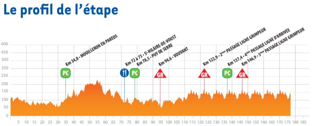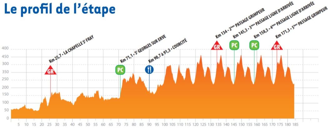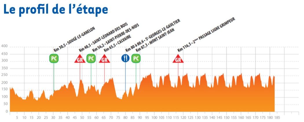 Mercredi, ce sera rebelote pour les sprinteurs. Si une surprise reste possible pour la première étape, la deuxième ne présente pas de difficulté et ne semble pas pouvoir échapper aux coureurs les plus rapides du peloton. Les difficultés arrivent véritablement lors de la troisième étape, avec cinq répétitions du Mont des Avaloirs (1,2km à 6,8%) en fin de parcours. Avant d’arriver sur le circuit final, il faudra négocier un parcours ondulant, avec notamment la côte de La Chapelle-Saint-Fray (1,1km à 4,1%). Le final est jugé en descente, avant une nouvelle étape exigeante pour terminer l’épreuve, ce vendredi. 183 kilomètres autour de Sillé-le-Guillaume, avec une nouvelle arrivée sur un circuit difficile. La ligne est alors dessinée au sommet d’une bosse de 800 mètres à 6,8%, qu’il faudra escalader à six reprises. Une autre rampe émaille juste avant la montée finale du circuit : 800 mètres à 8,3%.
