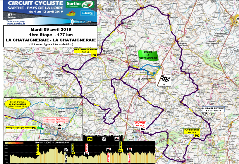 Mardi 9 avril : 1ère étape, La Châtaigneraie > La Châtaigneraie, 180km