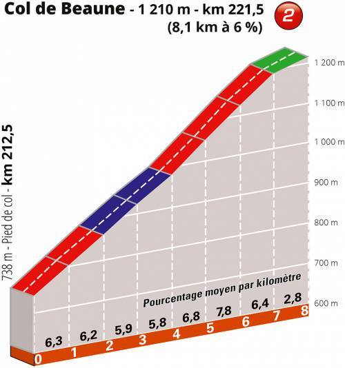| COL DE BEAUNE (1210 M) | 7.5 | 221.5 | 16:39 | 16:19 | 16:02 | ||