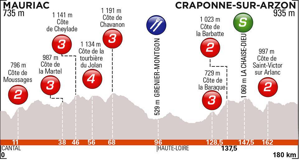 2e étape : Mauriac > Craponne-sur-Arzon, 180km