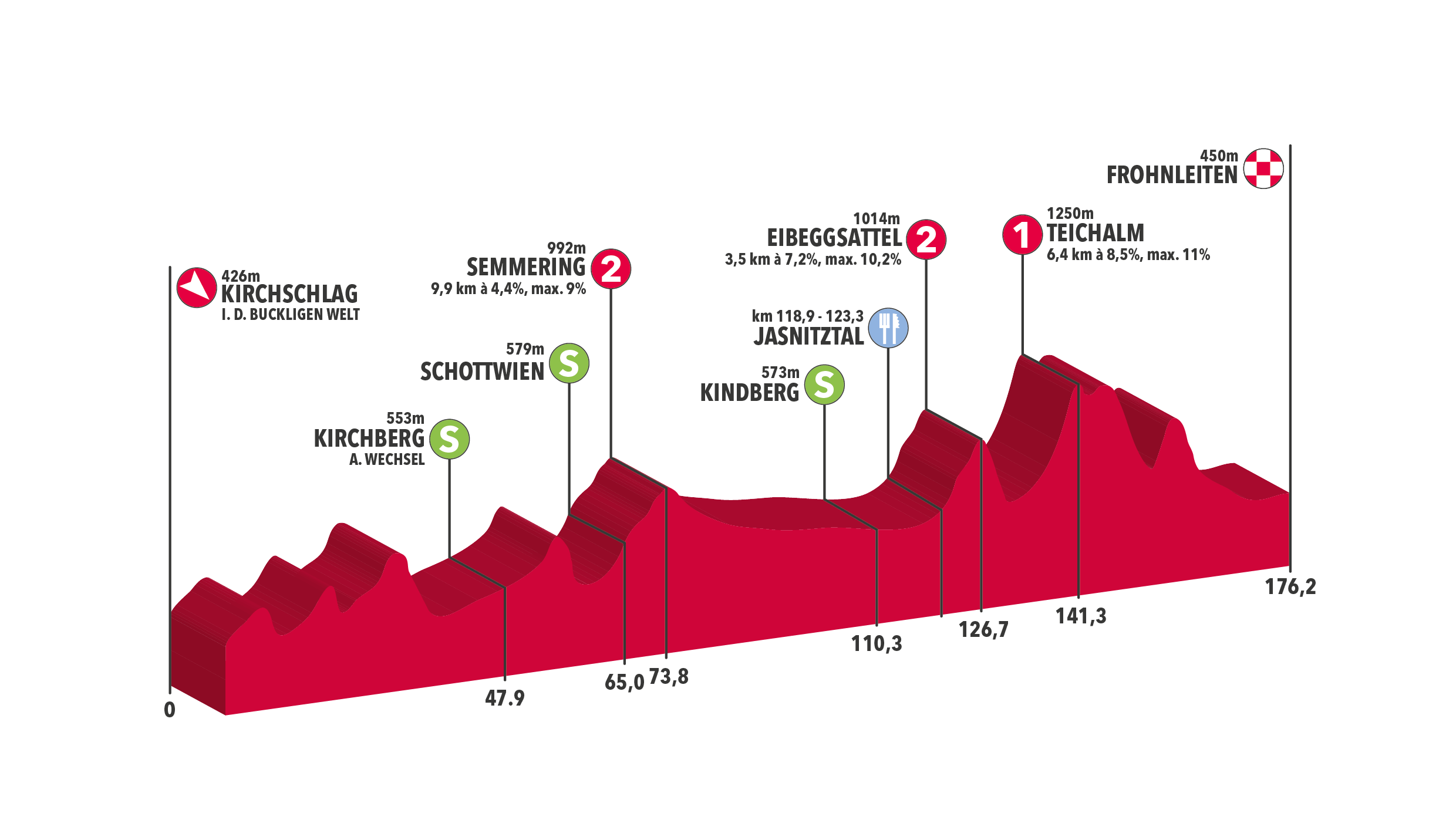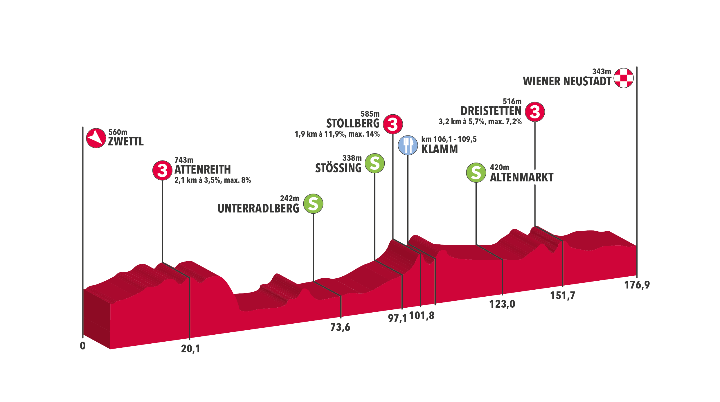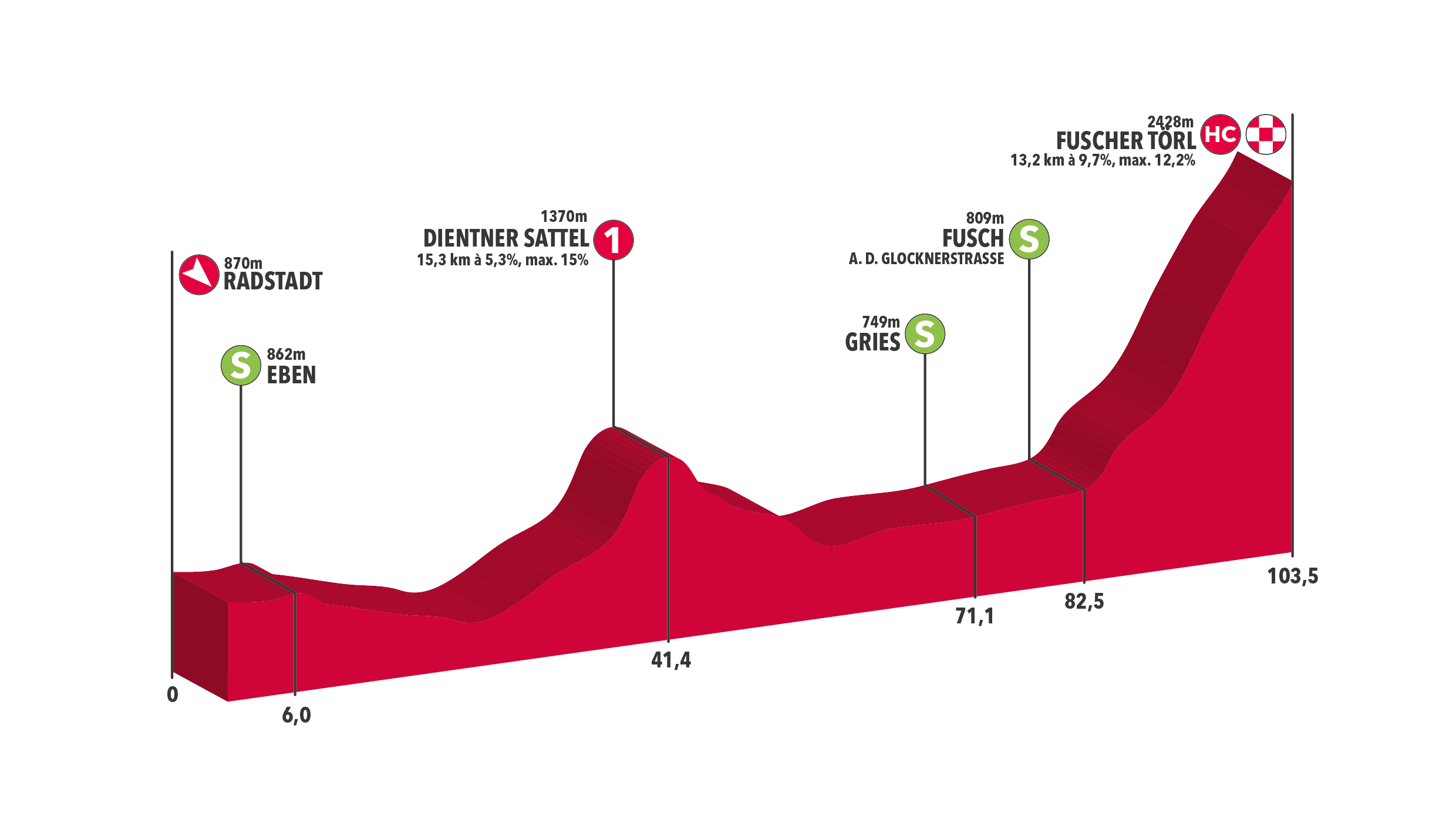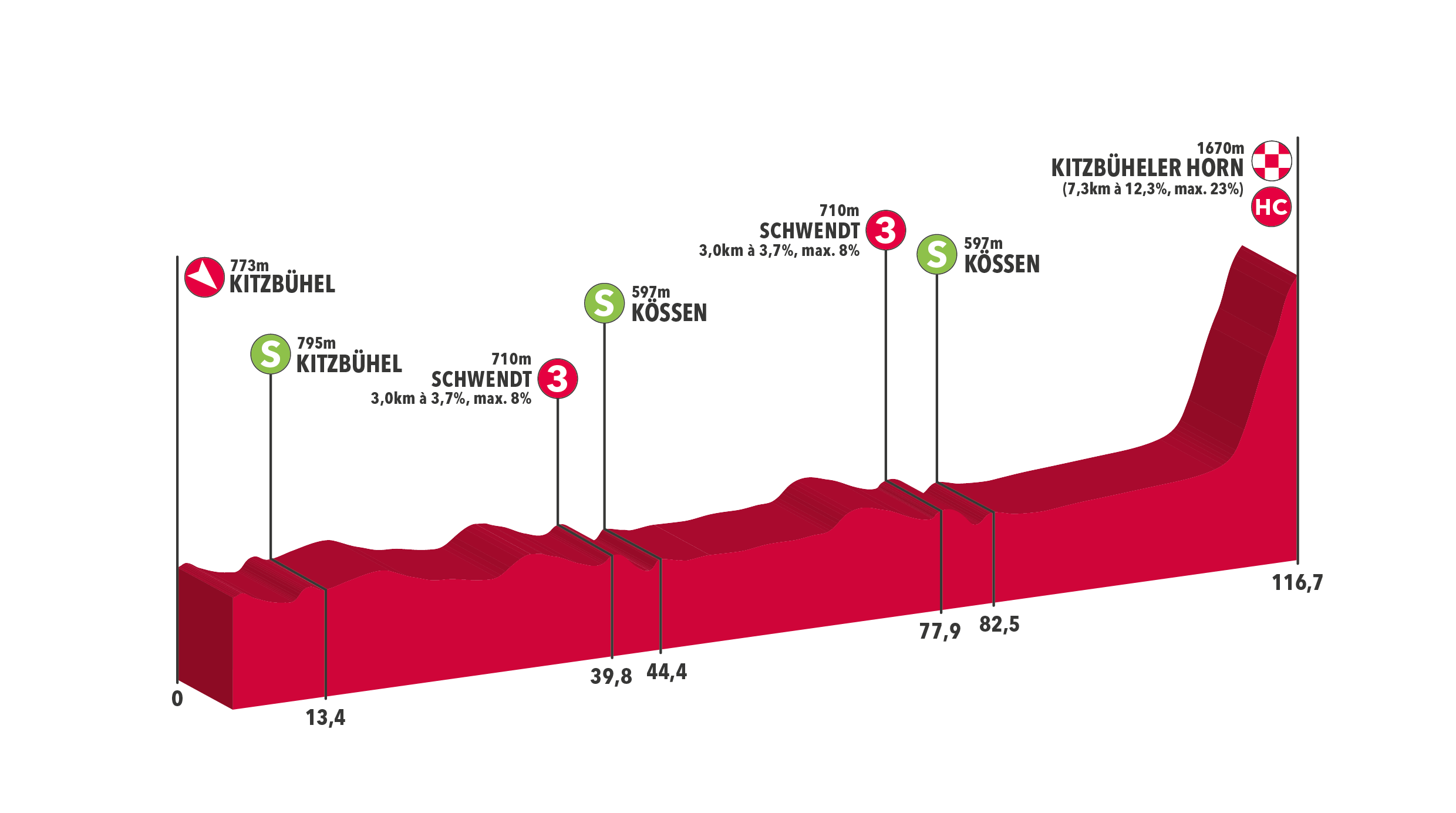 Parce qu’il n’y a pas que le Tour de France dans la vie, le Tour d’Autriche prend aussi ses quartiers ce samedi. L’épreuve classée 2.1 débute par un prologue de 2,5 kilomètres dans la ville de Wels. Les deux étapes en ligne suivantes devraient convenir aux sprinteurs costauds et aux puncheurs, avant une série de batailles en montagne. La troisième étape, 176,2km entre Kirchschlag et Frohnleiten, propose ainsi trois rampes sévères dans son final. Cela devrait donner une première idée de la hiérarchie à l’aube d’un premier grand rendez-vous. Le lendemain, il n’y aura alors que 103,5 kilomètres à couvrir, mais bien deux longues ascensions à boucler. D’abord le Dientner Sattel (1ère cat., 15,9km à 5,2%) et surtout la montée finale de Fuscher Törl (hors cat., 17,4km à 8,8%). Les purs grimpeurs pourront alors faire de belles différences avant une nouvelle étape intermédiaire et un final en apothéose, ce vendredi à Kitzbühel. Pour le dernier jour de course, les coureurs évolueront sur un circuit exigeant qui les mènera au pied du pic de Kitzbühel (hors cat., 7,3km à 12,3%, passage max : 23%). L’arrivée de la dernière étape étant jugée au sommet de cette difficulté, nul doute qu’elle sera le juge de paix de l’épreuve.