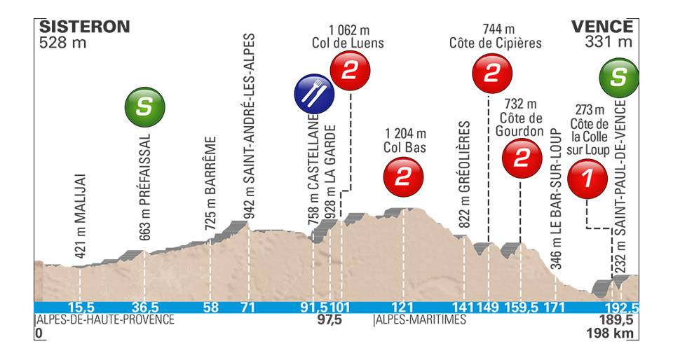 Plus que 4 kilomètres avant la côte de la Colle sur Loup, dernière difficulté du jour !