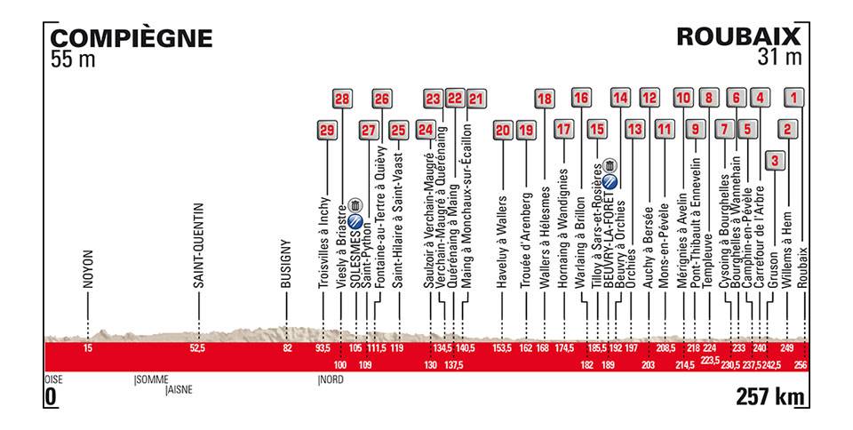 Compiègne > Roubaix, 257km (dont 54,5km de pavés)