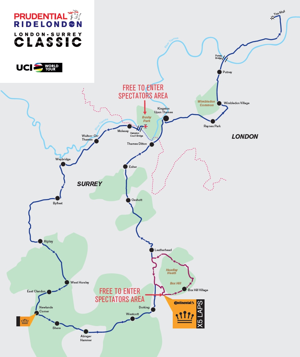 Les sprinteurs ont rendez-vous ce dimanche à Londres pour se disputer la 8e édition de la Prudential RideLondon. Si les organisateurs ont durci légèrement le parcours, on voit mal comment les finisseurs pourraient être privés d’une explication royale, non loin de Buckingham Palace. Le circuit est le même qu’à l’habitude sauf que les portions plates ont été raccourcies pour permettre un enchaînement plus rapide des ascensions de Box Hill (3,2km à 4%). Il faudra alors escalader cette bosse cinq fois en à peine soixante kilomètres. Seulement, l’arrivée est encore loin du dernier passage. Les sprinteurs en difficulté auront alors tout loisir d’être ramenés par leurs équipiers sur les cinquante dernières unités de course qui sont principalement plates. Le parcours long de 169 kilomètres – ce qui en fait la course d’un jour WorldTour la plus courte du calendrier – ne devrait pas non plus les fatiguer outre mesure.