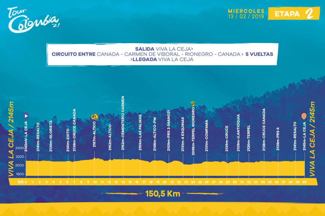 Étape 2 : La Ceja > La Ceja, 150,5 kilomètres