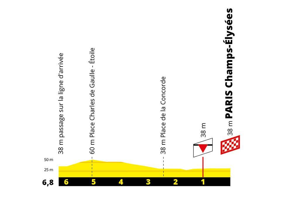 Nous y sommes déjà : la dernière étape du Tour de France et sa traditionnelle arrivée sur les Champs-Élysées. Ce dimanche, les coureurs s’élanceront de Rambouillet en début de soirée pour rallier la plus belle avenue du monde après 128 kilomètres de course. Il faudra alors traverser la vallée de Chevreuse avec la Côte de Saint-Rémy (4e cat., 1,3km à 6,1%), au km34 et celle de Châteaufort (4e cat., 900m à 4,9%), quatre unités plus loin. Plusieurs difficultés émaillent ensuite le parcours jusqu’à Meudon, mais elles ne sont pas répertoriées. Cela étant, le début d’étape sera plus propice à la célébration des vainqueurs qu’à se disputer une véritable course. D’autant que le maillot à pois de Romain Bardet (AG2R-La Mondiale) est déjà assuré. Une fois à Meudon, les coureurs prendront la route de Paris où ils entreront par le Boulevard des Maréchaux, traverseront les portes de Versailles et de Châtillon puis arriveront dans le cœur de la capitale. Le peloton passera alors le jardin du Luxembourg, le Pont Neuf et le Palais du Louvre avant d’entrer sur le circuit final dessiné sur les Champs-Élysées. La boucle longue de 6,5 kilomètres sera à couvrir huit fois avant de se jouer la victoire d’étape. Un sprint intermédiaire sera aussi disputé en haut des Champs-Élysées lors du quatrième tour de circuit.