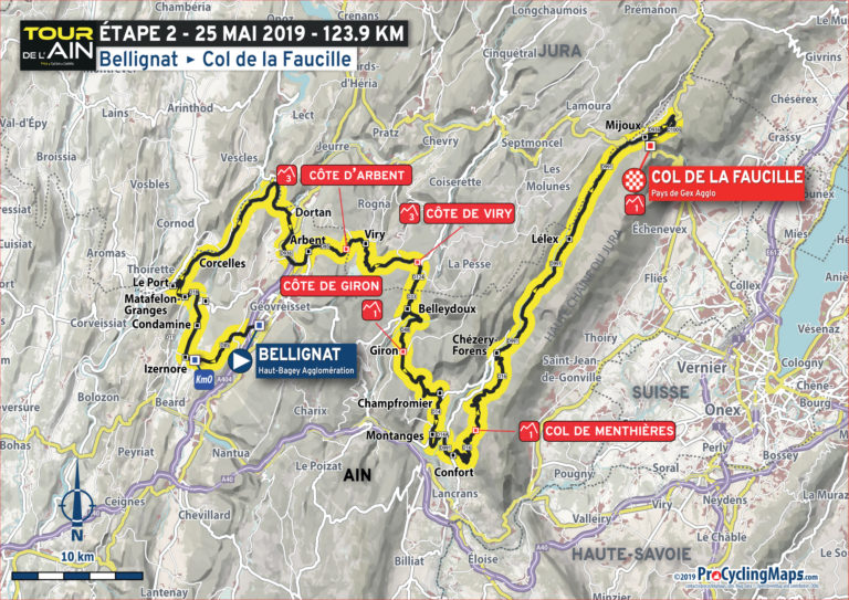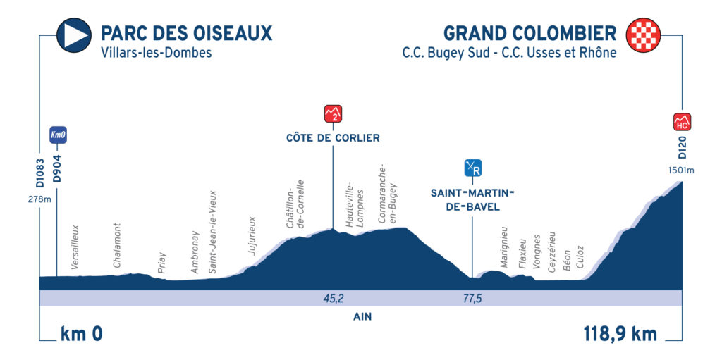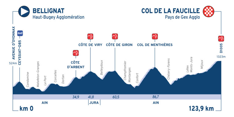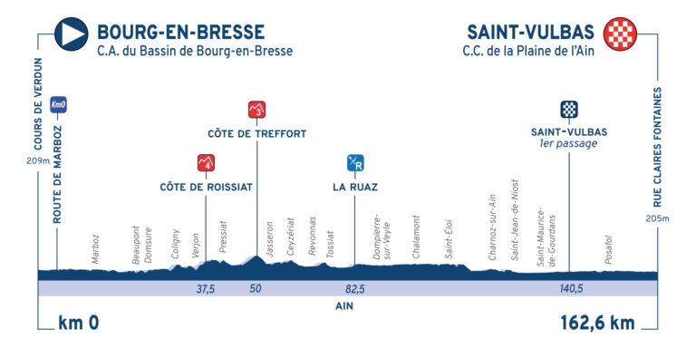 La 31e édition du Tour de l’Ain débute ce vendredi, par une étape de 162,6 kilomètres entre Bourg-en-Bresse et Saint-Vulbas. Le parcours présente deux petites bosses, mais ne devrait pas empêcher les sprinteurs de se disputer le gain du premier maillot de leader. Les profils seront bien plus accidentés ce week-end. La deuxième étape propose alors cinq ascensions dont l’arrivée au sommet du Col de la Faucille. Longue de seulement 123,9 kilomètres, cette étape propose aussi la montée du Col de Menthières et devrait offrir les premiers gros écarts au général avant la dernière étape, dimanche, et une nouvelle arrivée au sommet. Deux difficultés seront alors répertoriées sur 118,9 kilomètres : la Côte de Corlier, et la montée finale du Grand Colombier, juge de paix de ce Tour de l’Ain.