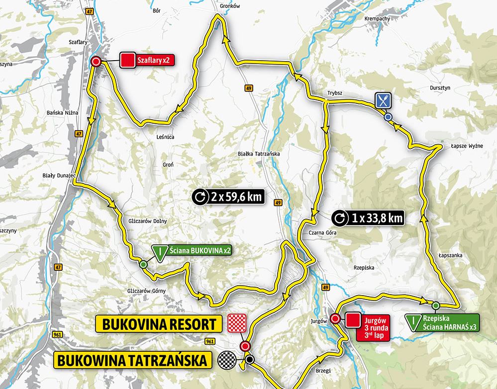 Après la course folle de la veille, il semble probable que les coureurs remettent ça ce vendredi, pour la dernière étape. Comme de coutume, l’épreuve se termine autour de Bukowina, avec un circuit toujours aussi explosif. Une première boucle de 56 kilomètres sera alors à couvrir deux fois avec en son sein les montées de Rzepiska (1ère cat., 2,5km à 6,9%) et Sciana Bukowina (1ère cat., 1,5km à 10,5%). Une fois les deux tours effectués, les coureurs devront escalader une dernière fois Rzepiska avant de se diriger vers l’arrivée. Deux petites bosses non répertoriées émaillent le final, avant une arrivée en montée. De quoi renverser le général, alors que les onze premiers se tiennent encore en vingt secondes. En plus, le vainqueur surprise de la veille Jonas Vingegaard (Jumbo-Visma) n’a aucune expérience en matière de défense d’un leadership. S’il a impressionné hier, le jeune Danois sera sans doute attaqué de toutes parts ce vendredi.