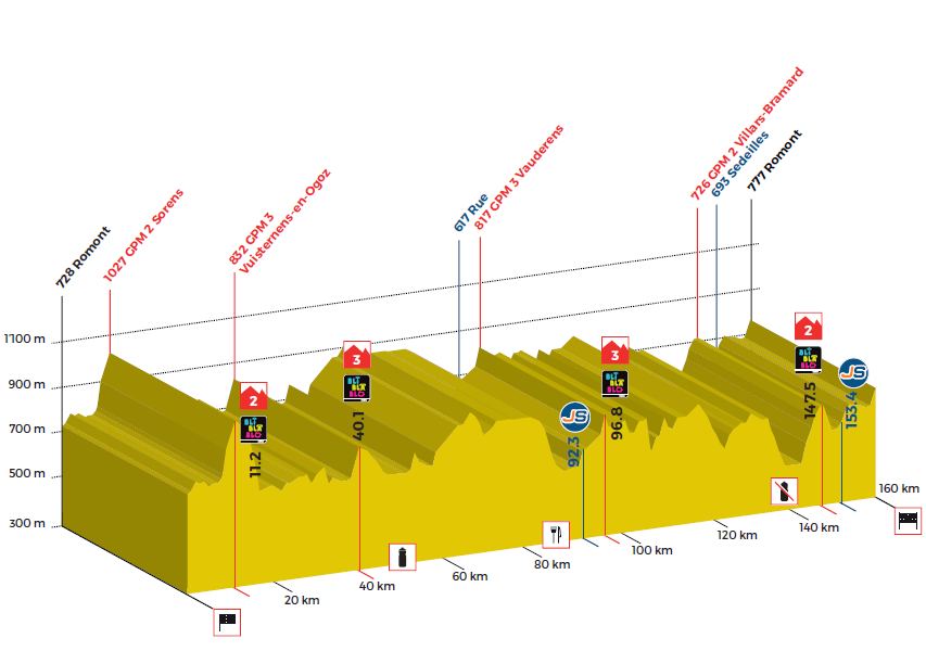 Une étape taillée pour les baroudeurs. Ce vendredi, le peloton du Tour de Romandie tournera autour de Romont. Il faudra alors passer trois fois sur la ligne d’arrivée, dessinée au sommet d’une montée de 900 mètres à 7,8%. Auparavant, la Côte de Sorens (3,7km à 6,4%), placée en début d’étape, offrira une rampe de lancement idéale aux coureurs offensifs. Si un groupe important venait à se dégager, il semble qu’il sera très difficile de s’organiser à sa poursuite. Il n’y a pas un kilomètre plat ce vendredi. Outre la première bosse, trois autres difficultés sont répertoriées au classement de la montagne : Vuisternens-en-Ogoz (2,2km à 5,6%), Vauderens (1,2km à 7,6%) et Villars-Bramard (4,2km à 5,3%). De plus, les favoris pour le général devraient se neutraliser avant de disputer, demain, l’étape reine, et, dimanche, le chrono décisif.