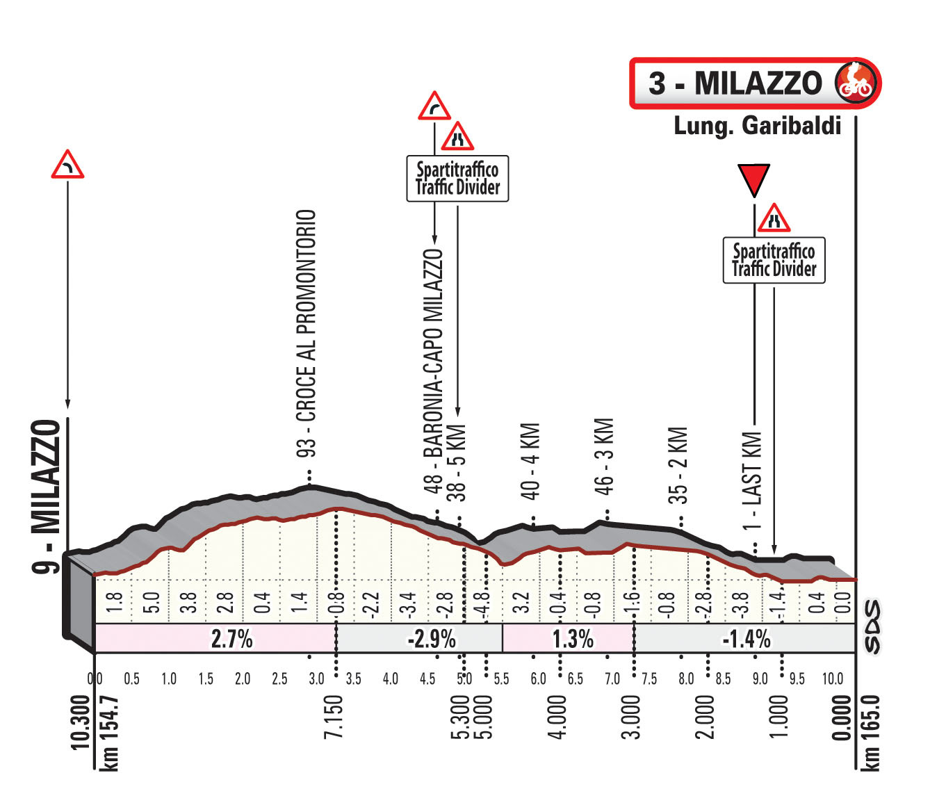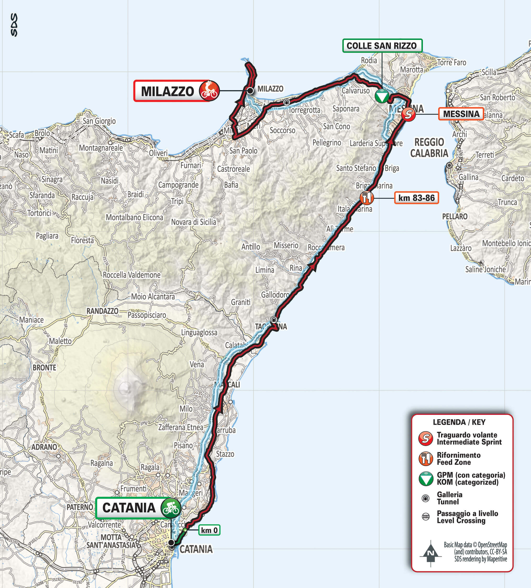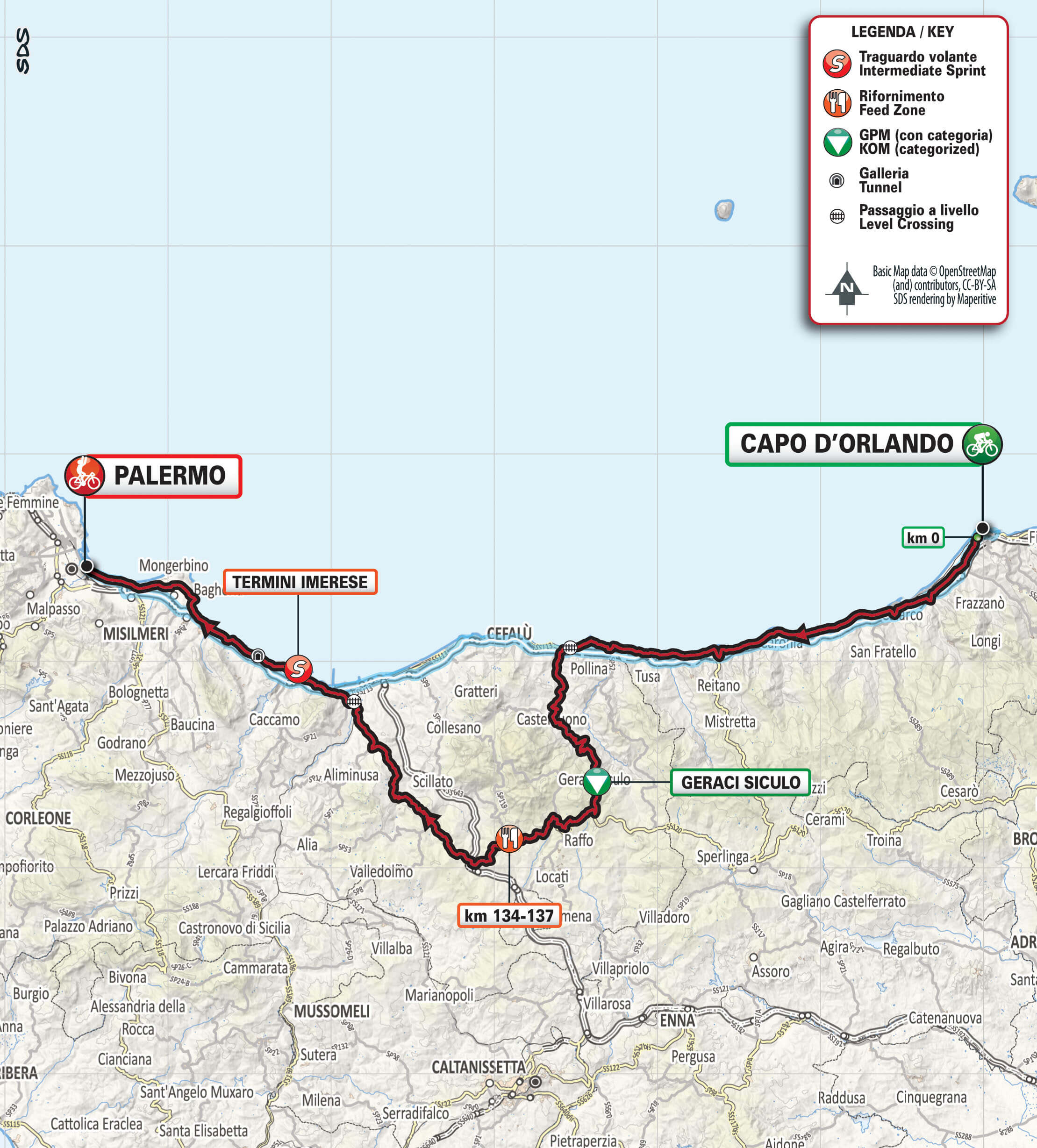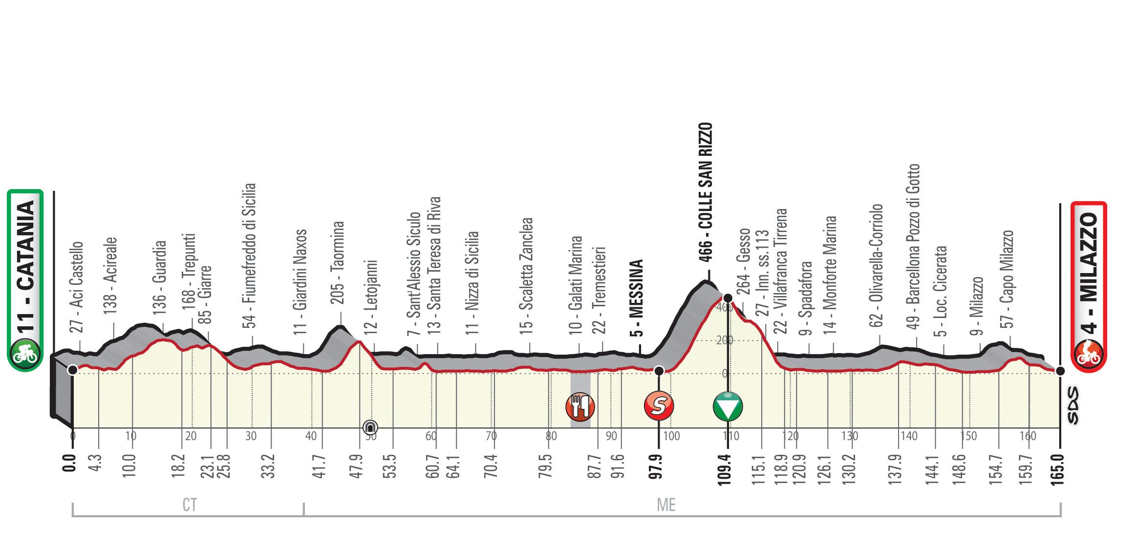 La première étape relie Catane à Milazzo au terme de 165 kilomètres et présente une seule difficulté : le Colle San Rizzo, à 55 unités du but. Un sprint massif est donc attendu pour lancer le Tour de Sicile. D’autant que la ligne est dessinée sur une route large de 8 mètres. Il faudra tout de même se méfier des petites ruelles de Milazzo avant d’entamer la dernière ligne droite. Ensuite, le peloton prendra la route de Capo d’Orlando pour disputer la deuxième étape, la plus longue du Tour de Sicile. 236 kilomètres seront alors à effectuer pour rallier Palerme. Le premier tiers de la course est dessiné le long de la mer, avant que les coureurs ne se présentent aux pieds de deux difficultés importantes : Geraci Siculo et Petralia Soprana. Une fois ses deux ascensions effectuées, le peloton retrouvera des routes plates et larges le long de la mer. Les sprinteurs pourraient l’emporter une nouvelle fois, à moins que l’échappée du jour ne parviennent à prendre un avantage conséquent sur les deux cols.