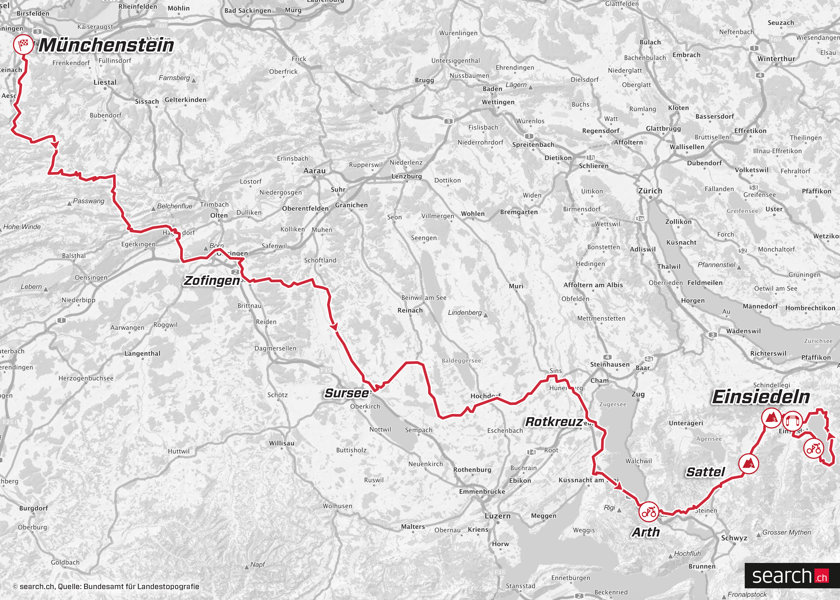 Mercredi 19 juin: 5e étape, Münchenstein > Einsiedeln, 177km