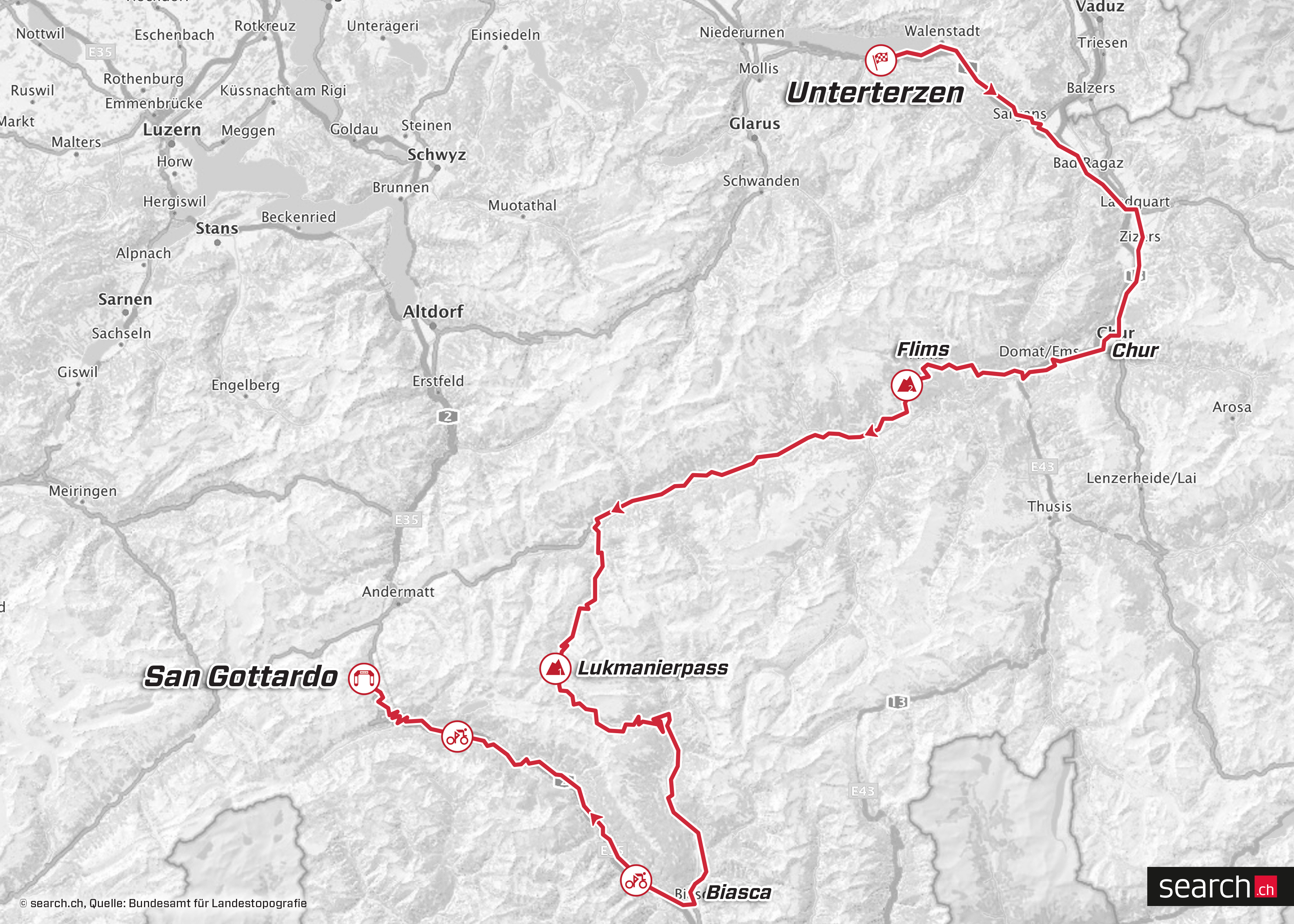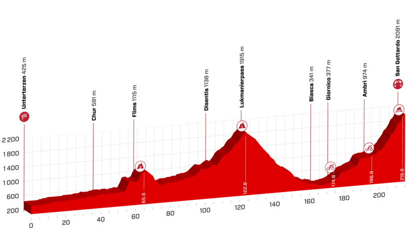 Vendredi 21 juin: 7e étape, Unterterzen > San Gottardo, 216,6km