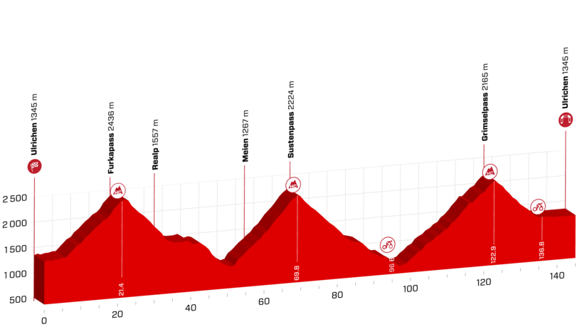 Les choses se compliquent ensuite avec une journée particulièrement accidentée. S’il n’y a pas d’ascension majeure au programme du cinquième jour de course, c’est plutôt la répétition d’efforts qui devrait opérer une belle sélection. Là encore, les baroudeurs seront à surveiller. Les puncheurs pourraient également briller sur l’arrivée en faux plat montant d’Einsiedeln. A partir de la sixième étape, les grimpeurs se trouveront mieux à leur aise. La journée de jeudi se terminera alors par une montée de 8,5km à 9%. L’occasion pour les spécialistes de creuser de beaux écarts. Rebelote le lendemain, avec une étape plus dure et une nouvelle arrivée au sommet. Outre la montée finale vers San Gottardo (12,4km à 7%), il faudra auparavant négocier l’ascension de Lukmanierpass (16,5km à 5,3%). Une fois ces deux étapes de montagne passées, l’occasion est donnée aux rouleurs de rattraper le temps perdu. Un nouveau contre-la-montre sera alors au programme, cette fois autour de Goms, sur 19,2 kilomètres sans difficulté. De quoi rebattre les cartes avant une ultime étape de montagne, sans doute l’étape reine de l’épreuve, avec trois très longues ascensions réparties sur 144 kilomètres. Il y aura là le Furkapass (16,3km à 6,4%), le Sustenpass (17,5km à 7,5%) et le Gimselpass (25km à 6%) avant une descente de dix kilomètres et une arrivée sur le plat. Là, nous connaîtrons l’identité du vainqueur du 83e Tour de Suisse.