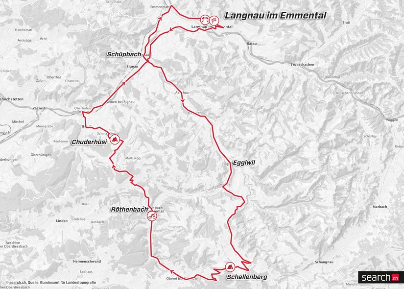 Au lendemain du chrono inaugural, le Tour de Suisse reste dans la localité de Langnau im Emmental, mais pour une étape bien plus musclée. Longue de 156,6 kilomètres, elle se compose en réalité d’un circuit de près de 50 kilomètres à parcourir trois fois. Ce circuit comprend alors deux bosses particulièrement difficiles : le Schallenberg (8km à 5.1%), qui ressemble davantage à deux murs séparés par une portion de plat plutôt qu’à une montée régulière, et le Chuderhüsi (3km à 9.3%), qui devrait faire la sélection grâce à ses pourcentages impressionnants.