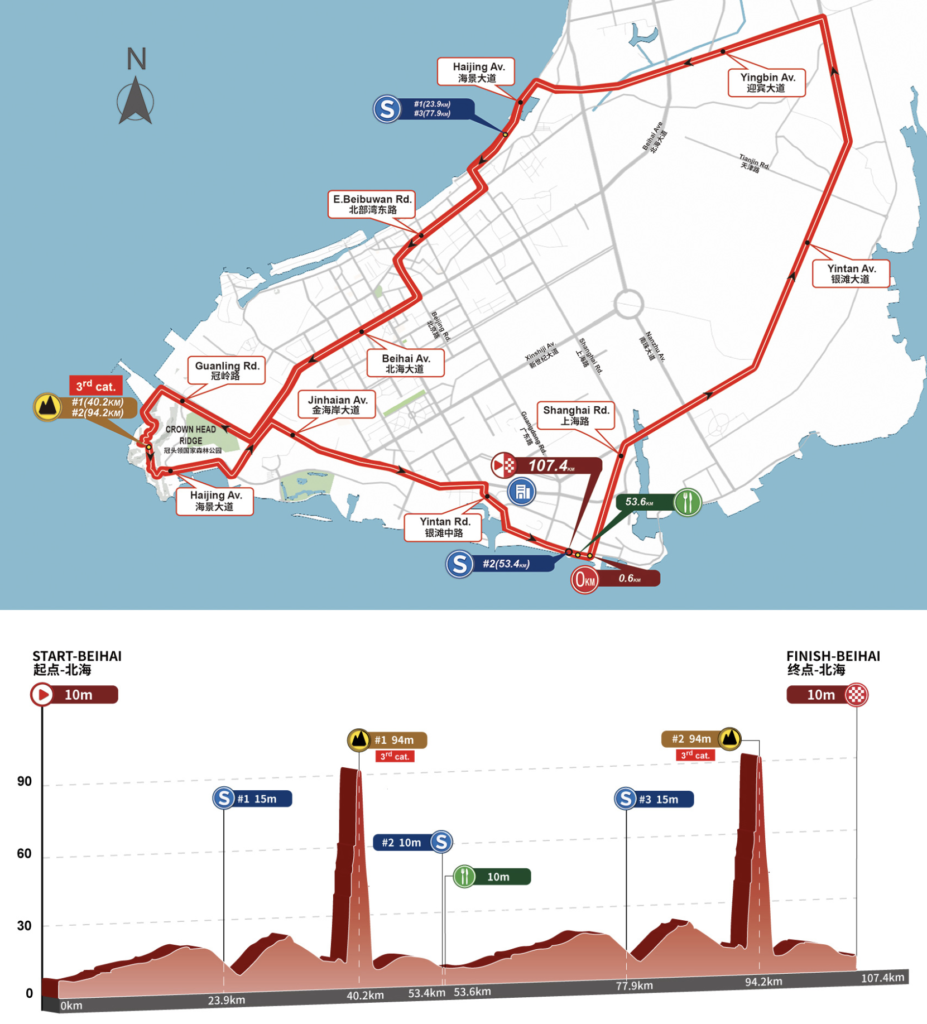 Mardi 16 octobre : 1e étape, Beihai – Beihai, 107,4km